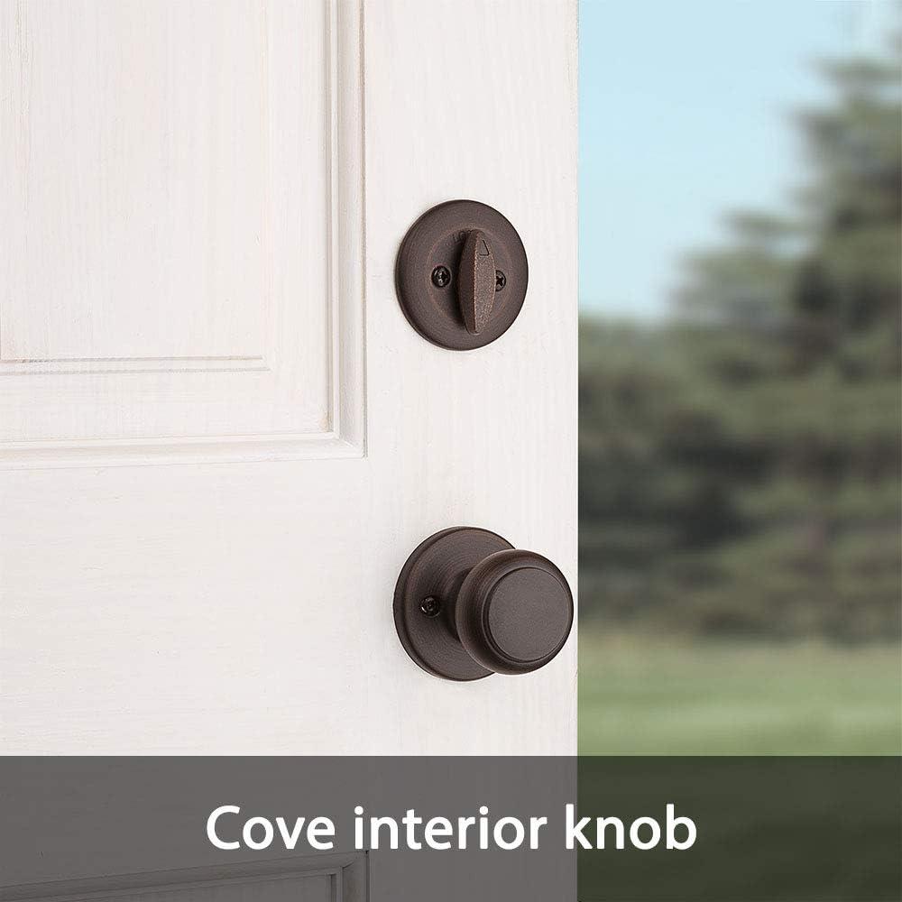 Kwikset Belleview Front Door Lock Handle and Deadbolt Set, Entry Handleset Exterior with Interior Door Knob, Satin Nickel, Pick Resistant SmartKey Rekey Deadbolt Security(Brown)