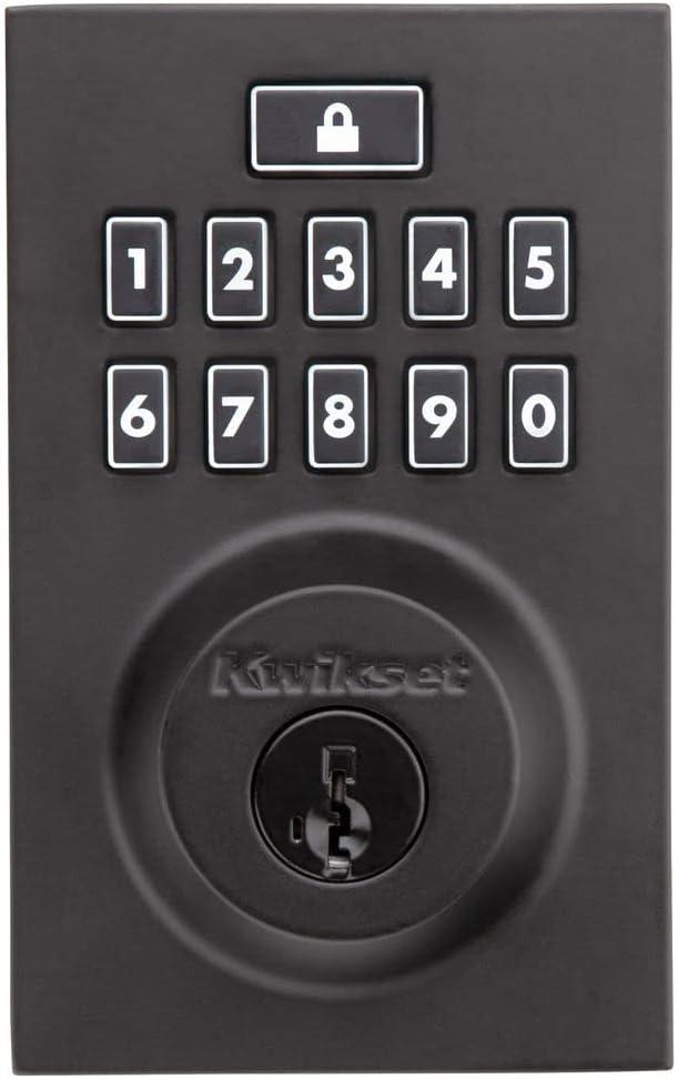Kwikset 914 Contemporary Keypad SmartCode Electronic Deadbolt Smart Lock featuring SmartKey Security and ZigBee 3.0 Technology in Matte Black