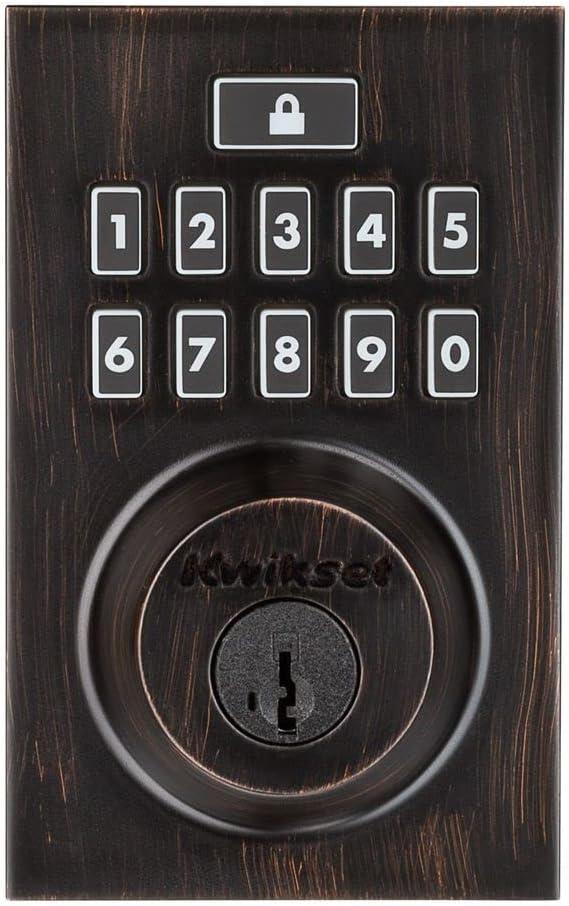 Kwikset 914 Contemporary Keypad SmartCode Electronic Deadbolt Smart Lock featuring SmartKey Security and ZigBee 3.0 Technology in Venetian Bronze