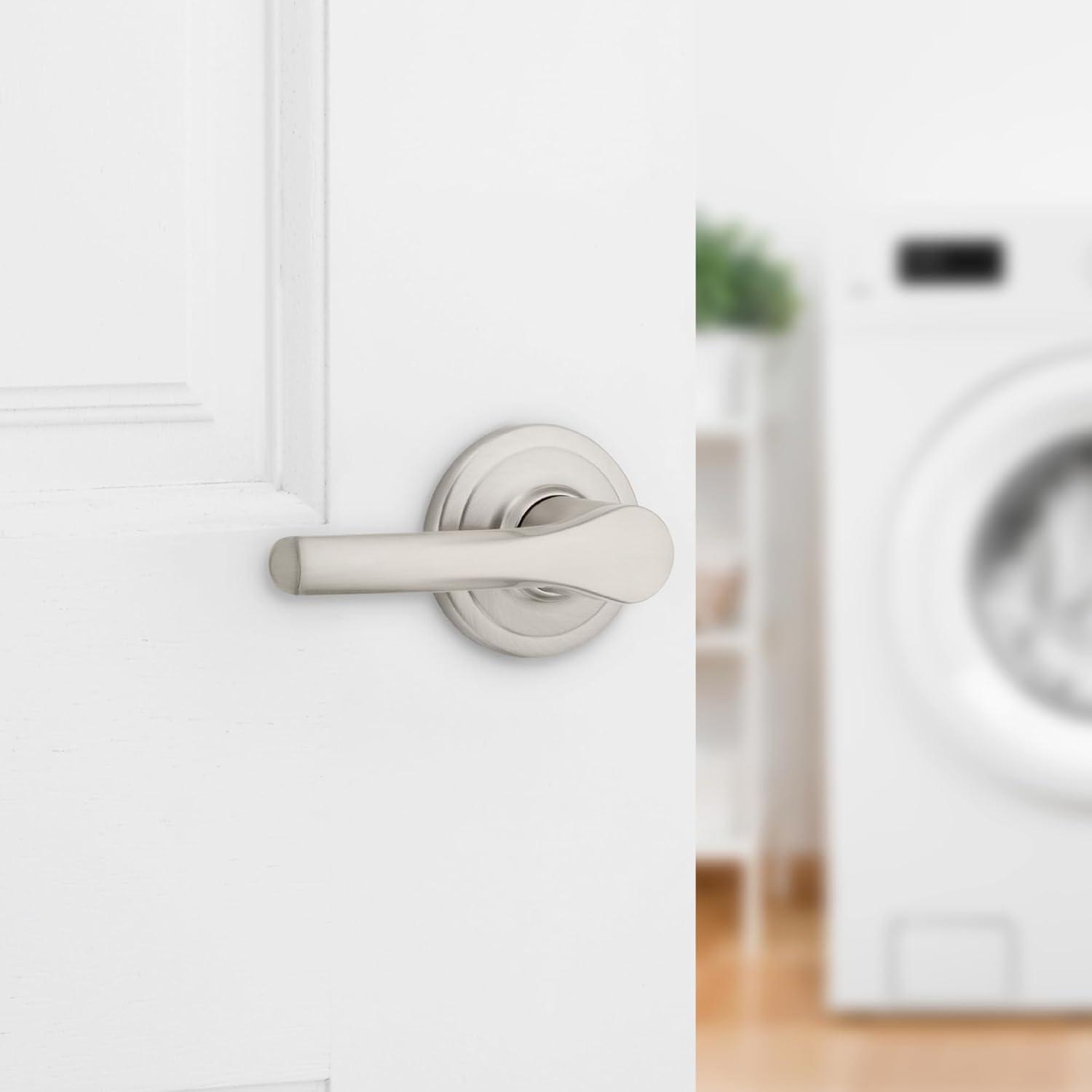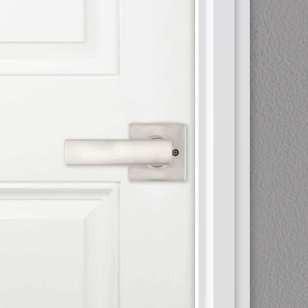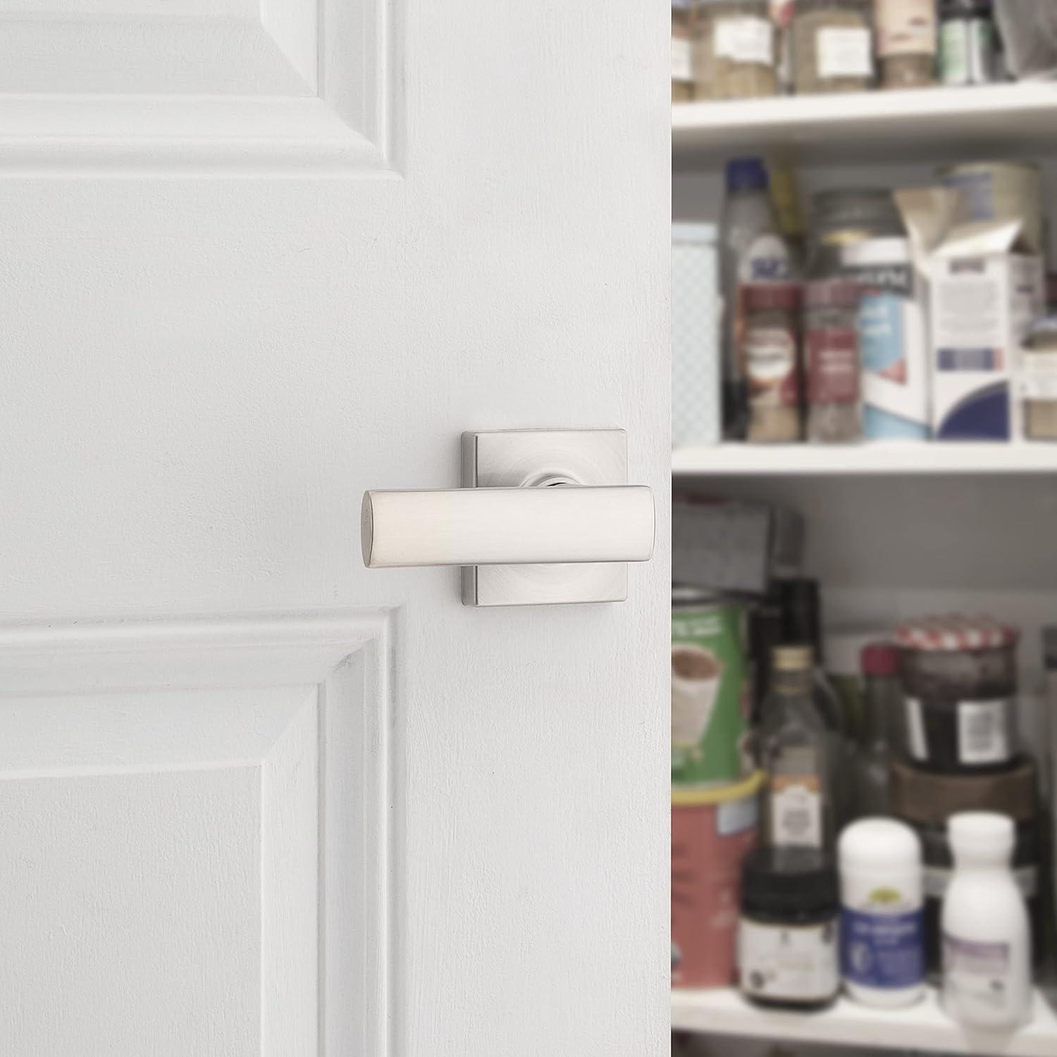 Kwikset Breton Interior Passage Door Handle 2 Pack, Lever for Closet and Hallway Doors, Reversible Non-Locking Handle Lever, Satin Nickel, with Microban Protection(Satin Nickel)