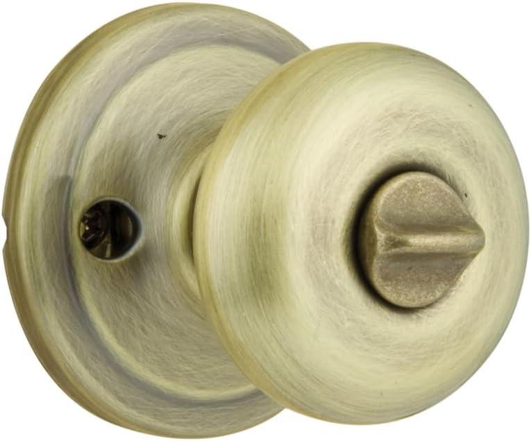 Kwikset Juno Interior Privacy Door Knob with Lock, Door Handle For Bathroom and Bedroom, Satin Nickel Keyless Turn Lock Doorknob, with Microban Protection(Antique Brass)