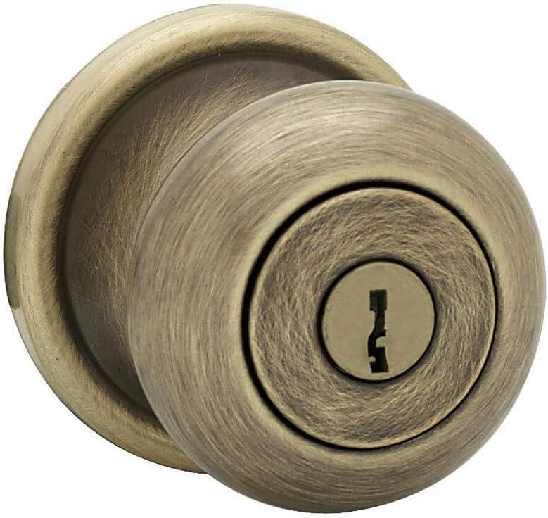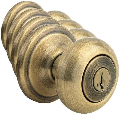 Kwikset Tylo Entry Door Knob with Lock and Key, Secure Keyed Handle Exterior, Front Entrance and Bedroom, Satin Nickel, Pick Resistant SmartKey Rekey Security and Microban(Antique Brass)