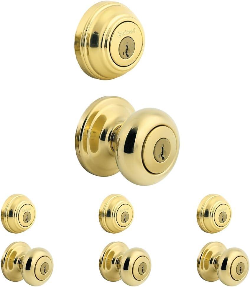 Kwikset 99910-035 Juno Entry Door Knob and Single Cylinder Deadbolt Combo Pack, 3, Venetian Bronze(Polished Brass)