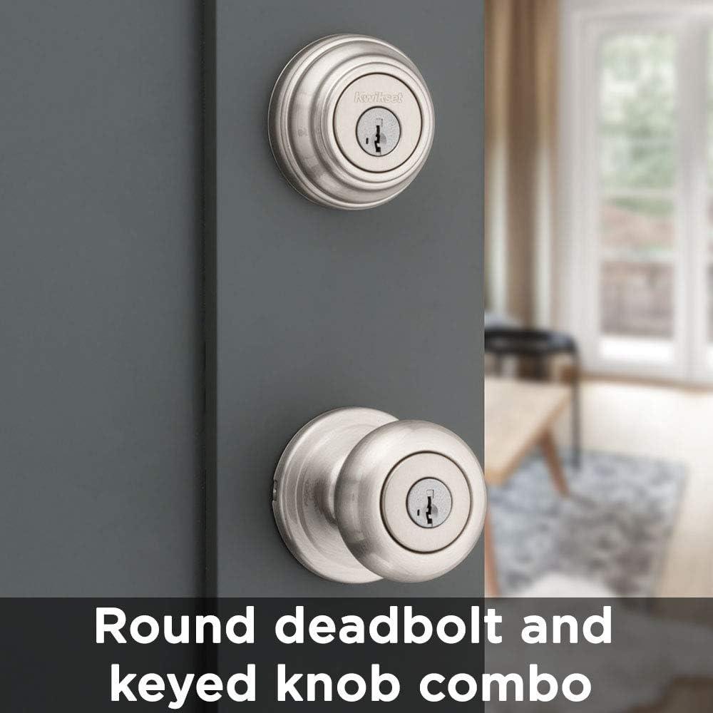 Kwikset 99910-035 Juno Entry Door Knob and Single Cylinder Deadbolt Combo Pack, 3, Venetian Bronze(Satin Nickel)