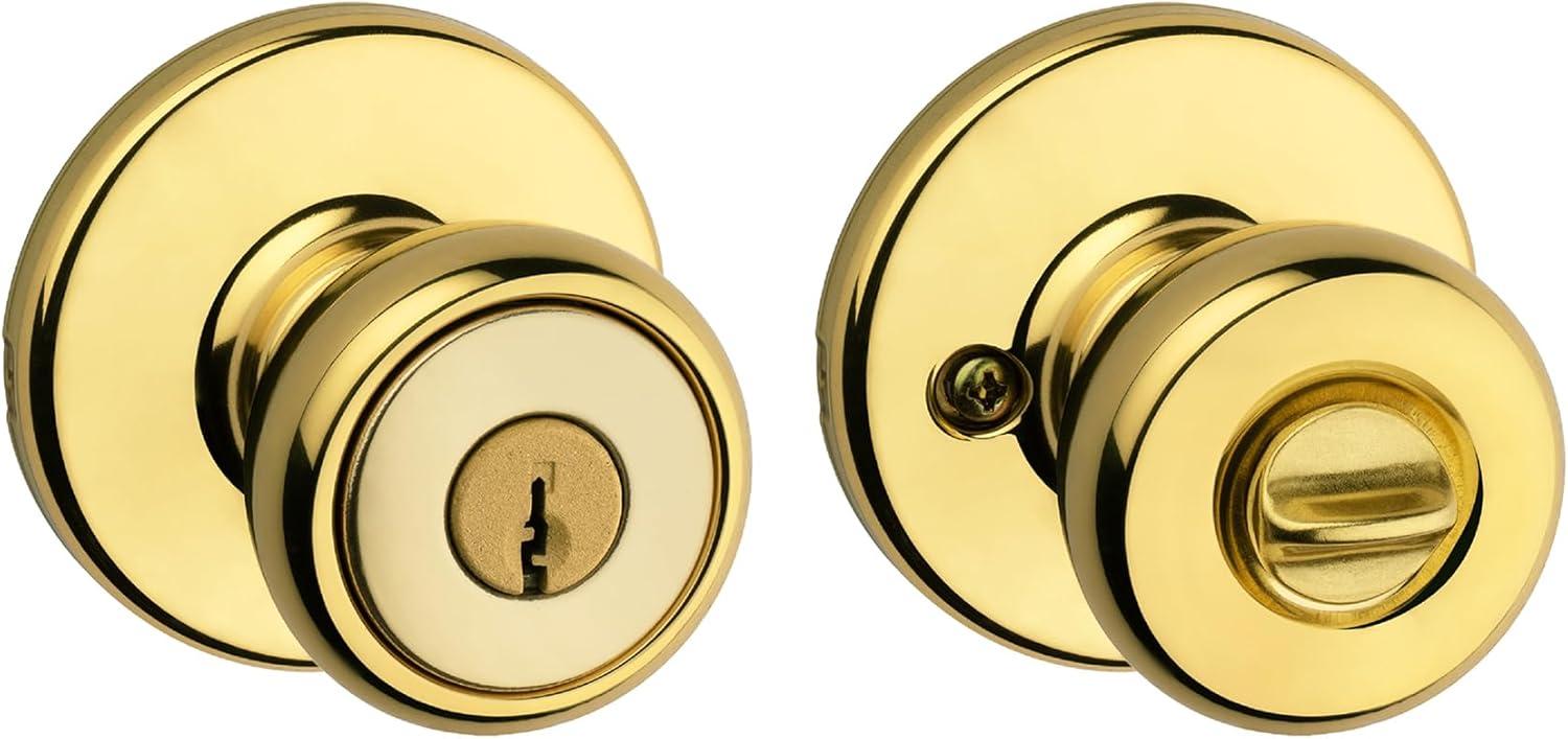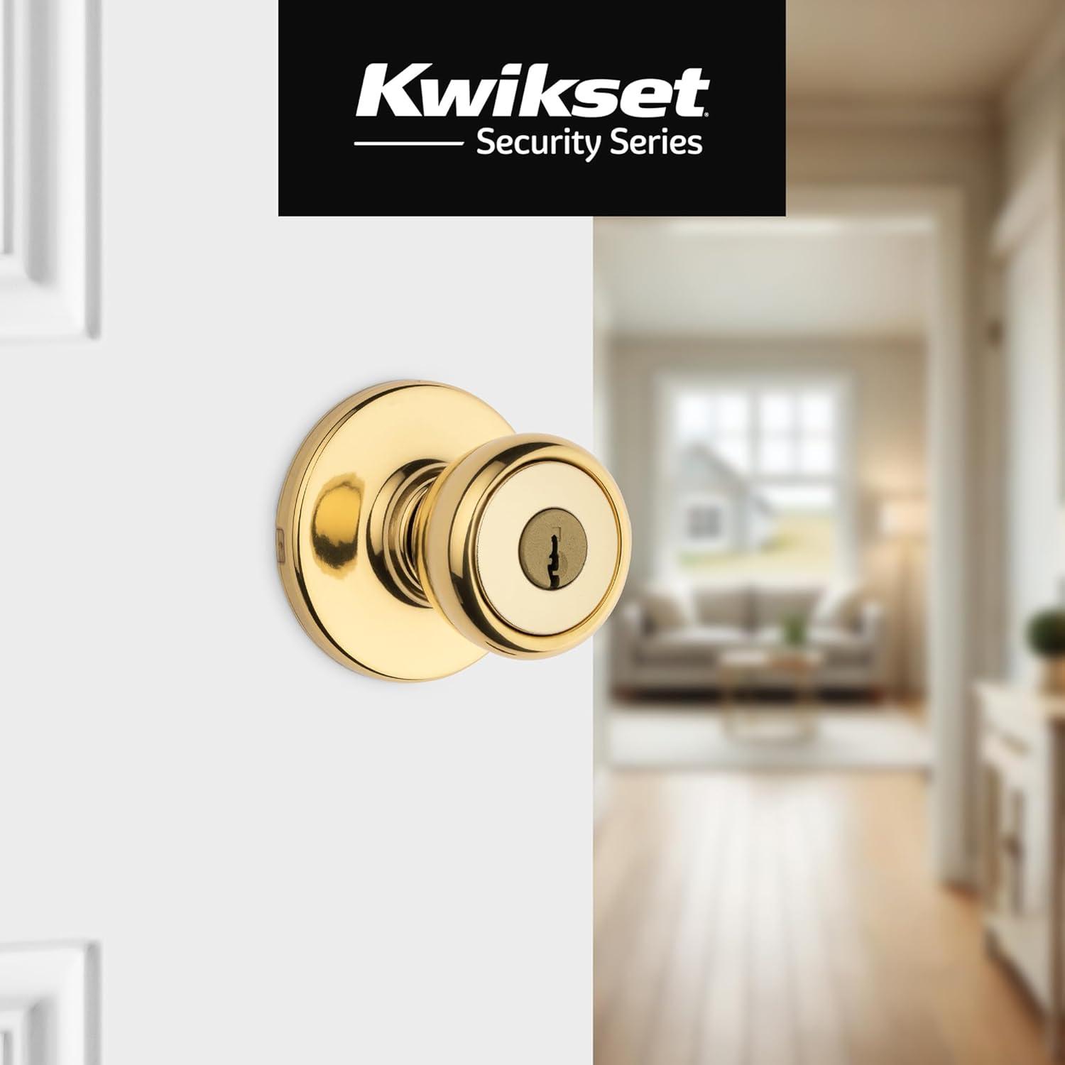 Kwikset Tylo Entry Door Knob with Lock and Key, Secure Keyed Handle Exterior, Front Entrance and Bedroom, Satin Nickel, Pick Resistant SmartKey Rekey Security and Microban(Polished Brass)