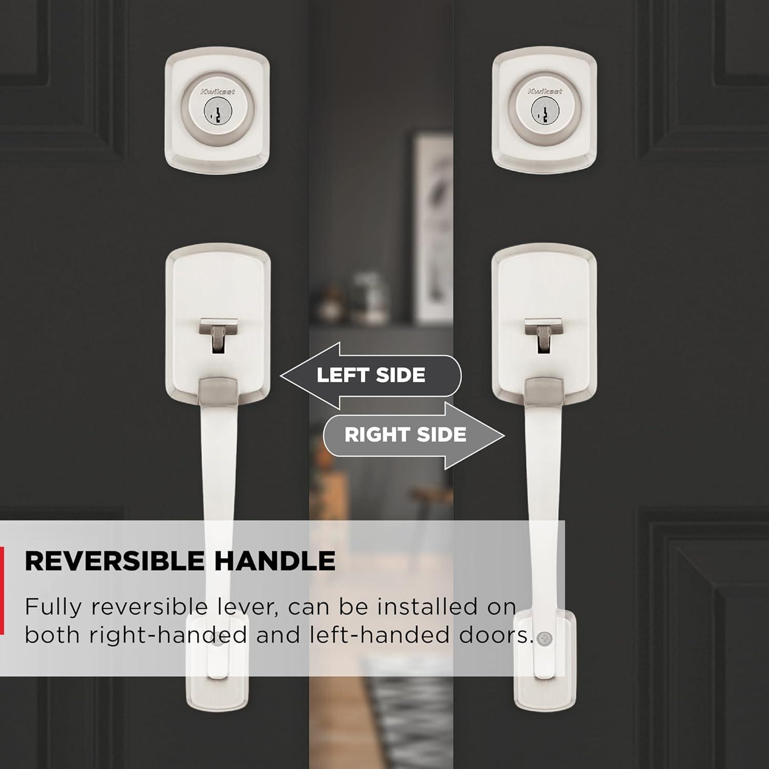 Kwikset Henley Front Door Lock Handle and Deadbolt Set, Entry Handleset Exterior with Interior Reversible Lever, Satin Nickel, Pick Resistant SmartKey Rekey Deadbolt Security, with Microban Protection(Satin Nickel)