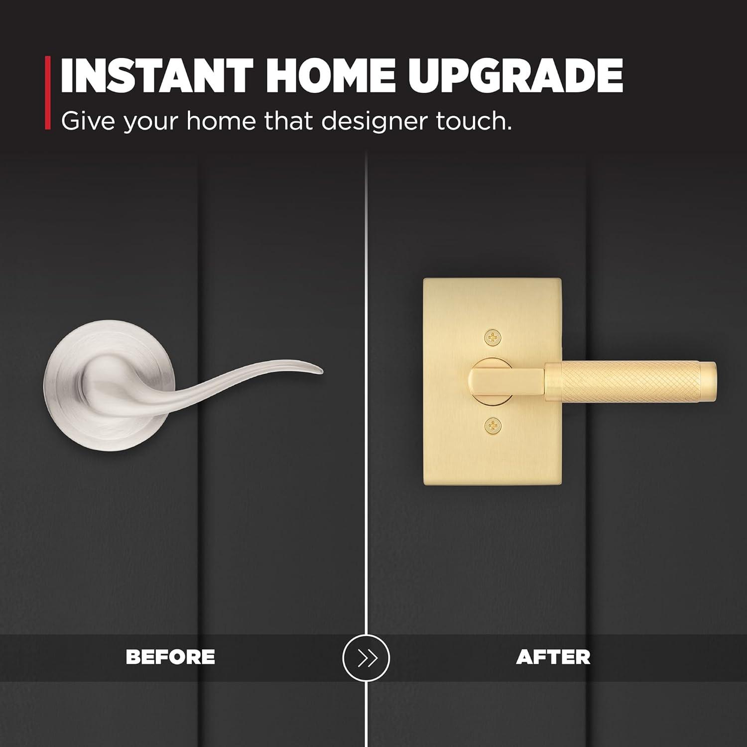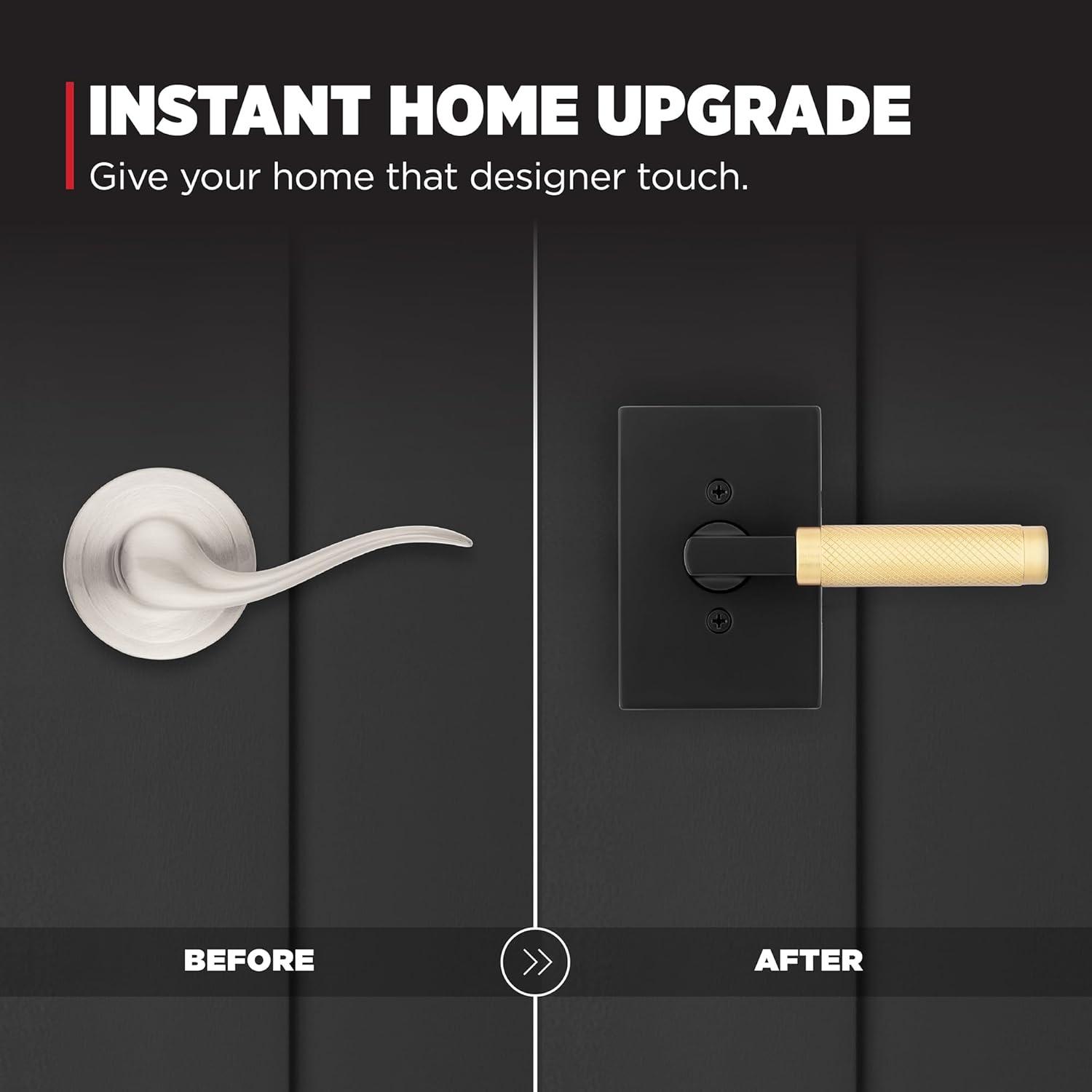 Kwikset Prava Entry Door Knurled Handle with Lock and Key, Secure Keyed Reversible Lever Exterior, for Front Entrance and Bedrooms, Satin Brass, Pick Resistant Smartkey Rekey Security and Microban(Matte Black & Satin Brass)