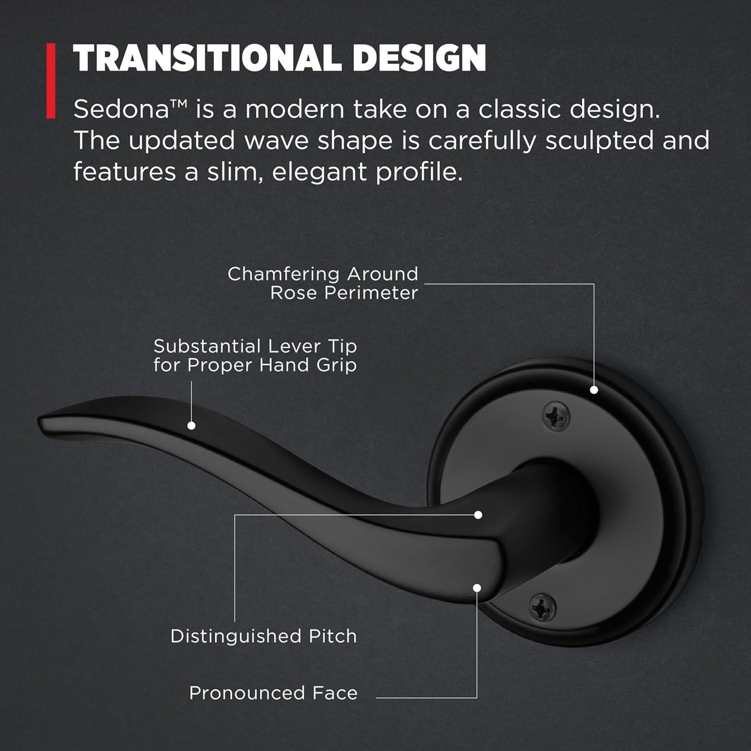 Kwikset Sedona Interior Privacy Door Handle with Lock, Door Lever for Bathroom and Bedroom, Satin Nickel Reversible Keyless Push Button Lock Door Lever, with Microban Protection(Matte Black)