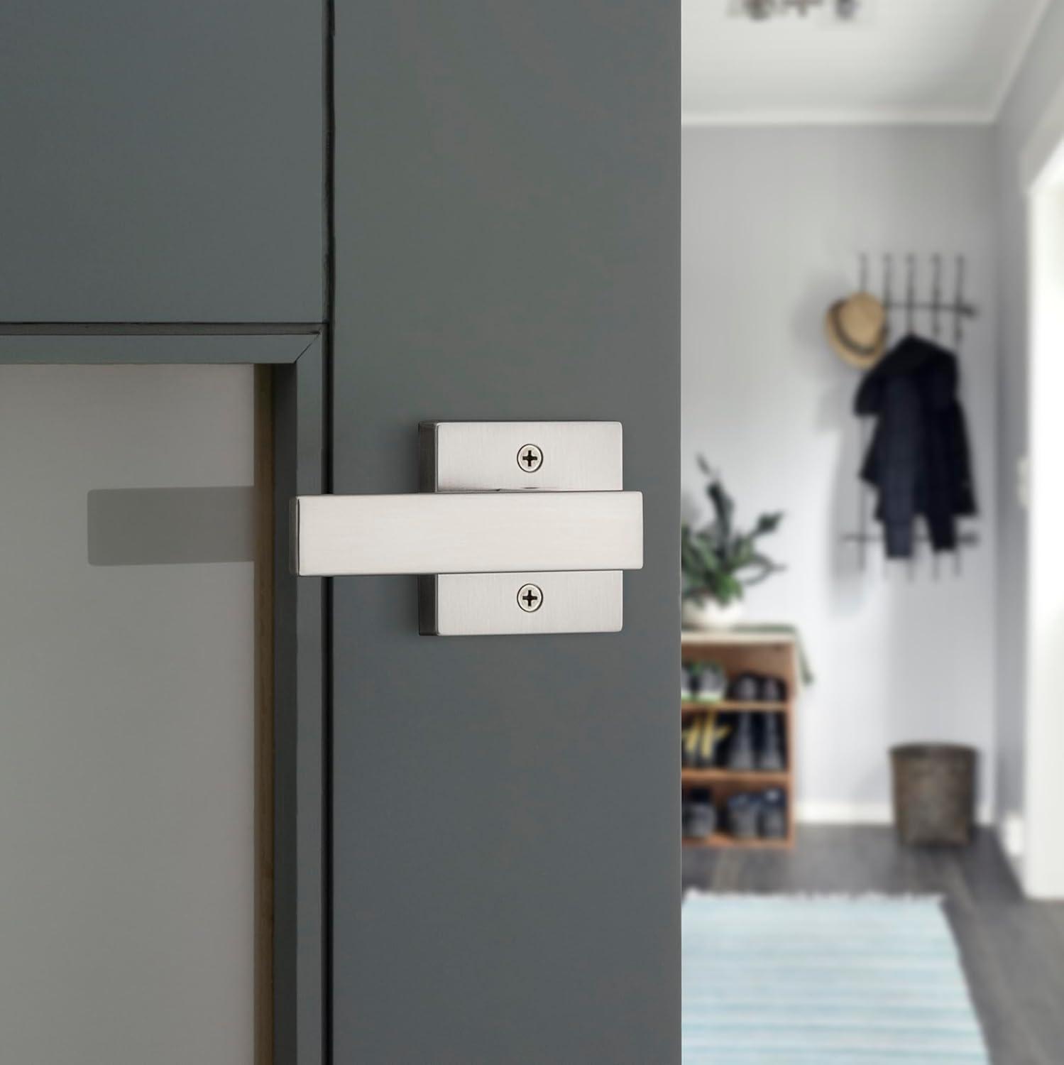 Kwikset Sedona Interior Privacy Door Handle with Lock, Door Lever for Bathroom and Bedroom, Satin Nickel Reversible Keyless Push Button Lock Door Lever, with Microban Protection(Satin Nickel)