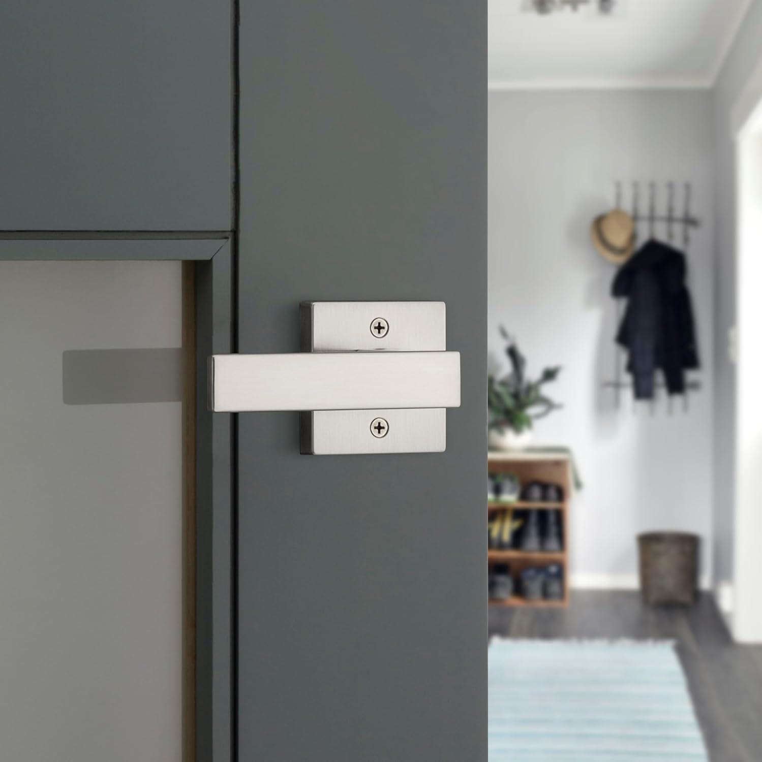Kwikset Singapore Interior Privacy Door Handle with Lock, Door Lever For Bathroom and Bedroom, Matte Black Reversible Keyless Turn Lock, with Microban Protection(Satin Nickel)
