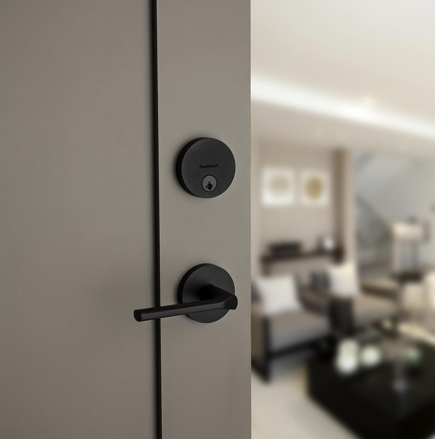 Kwikset Maven Front Door Lock Handle and Deadbolt Set, Entry Handleset Round Exterior with Interior Door Knob, Secure Locking Deadbolt, Matte Black, with Microban Protection(Matte Black)