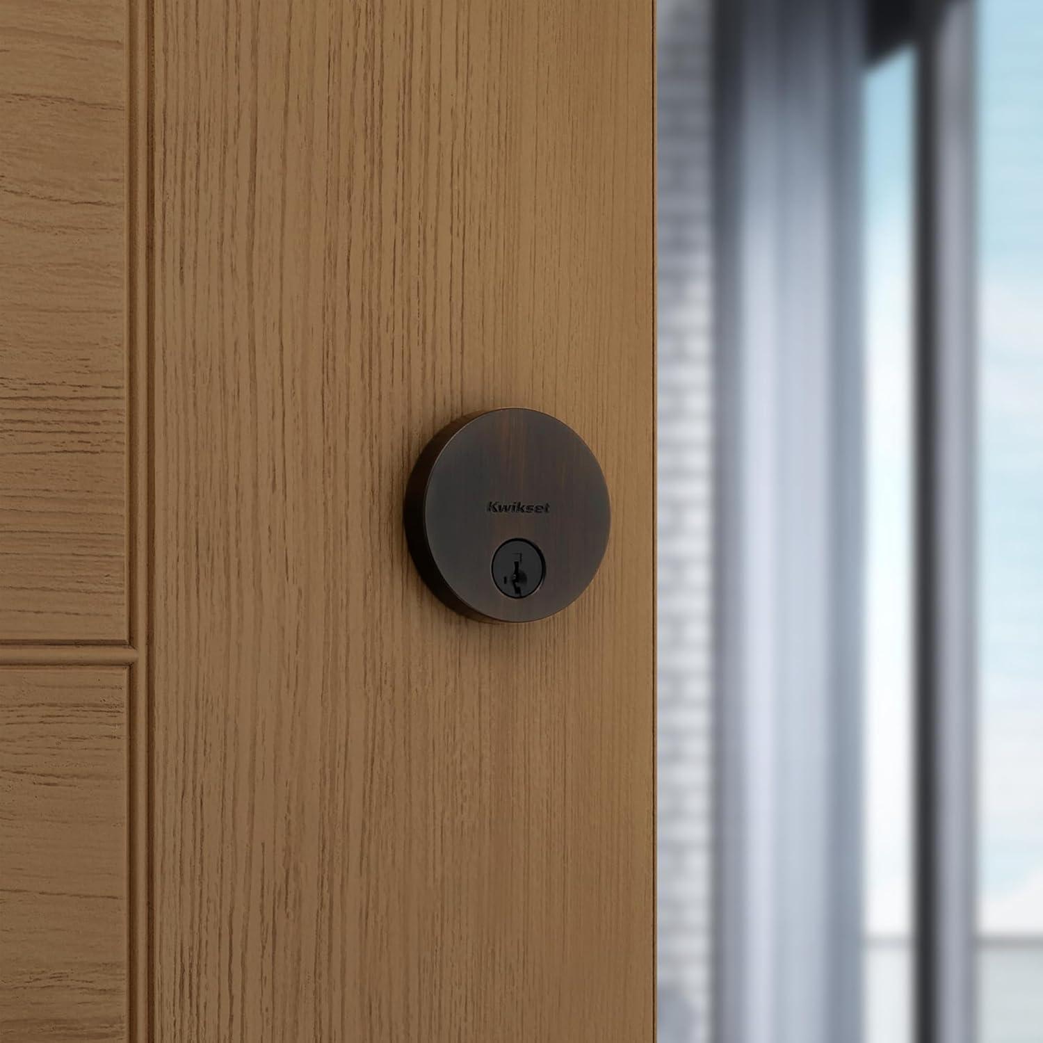 Kwikset Uptown Deadbolt Lock, Matte Black Round Exterior Keyed Front Entry Door, Pick Resistant SmartKey Rekey Security, Single Cylinder Dead Bolt, with Microban Protection(Venetian Bronze)