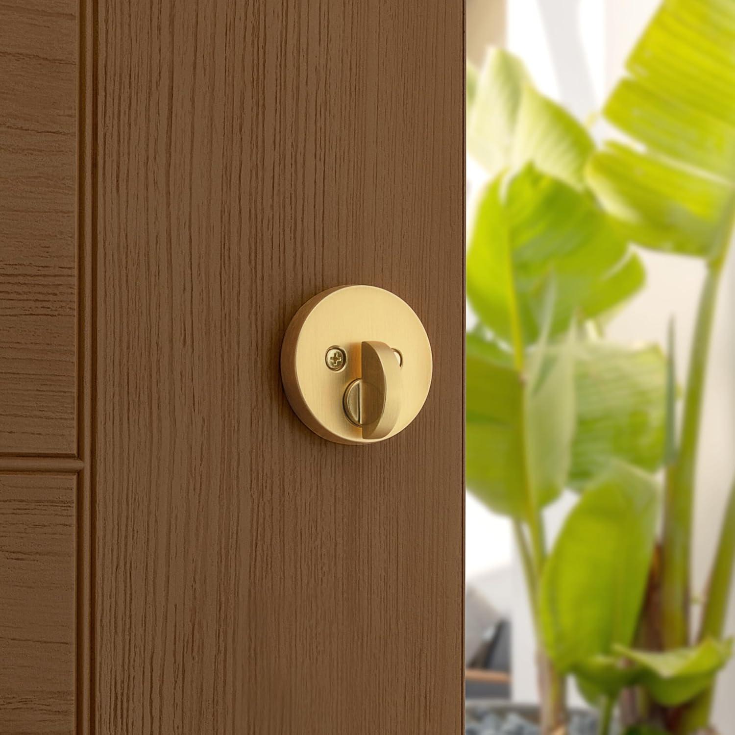 Kwikset Uptown Deadbolt Lock, Matte Black Round Exterior Keyed Front Entry Door, Pick Resistant SmartKey Rekey Security, Single Cylinder Dead Bolt, with Microban Protection(Satin Brass)
