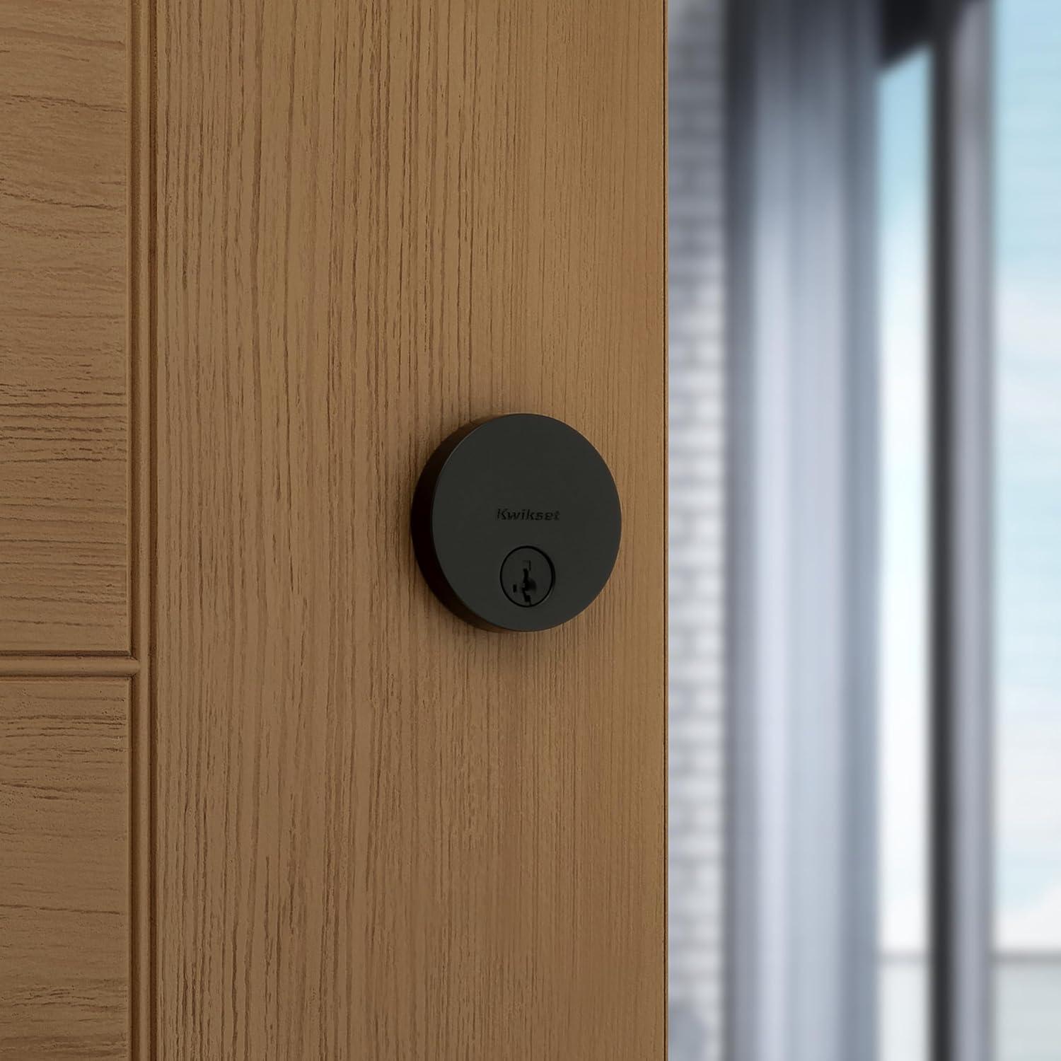 Kwikset Uptown Deadbolt Lock, Matte Black Round Exterior Keyed Front Entry Door, Pick Resistant SmartKey Rekey Security, Single Cylinder Dead Bolt, with Microban Protection(Matte Black)