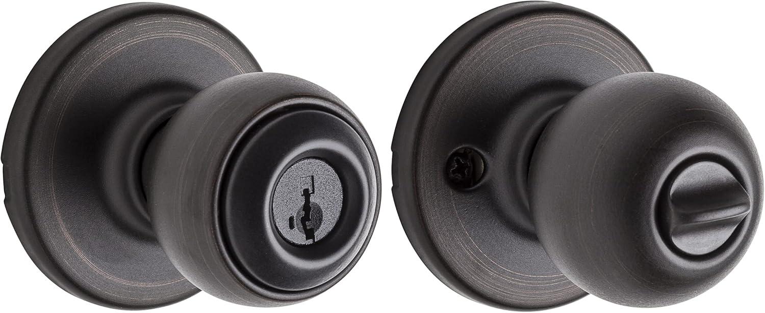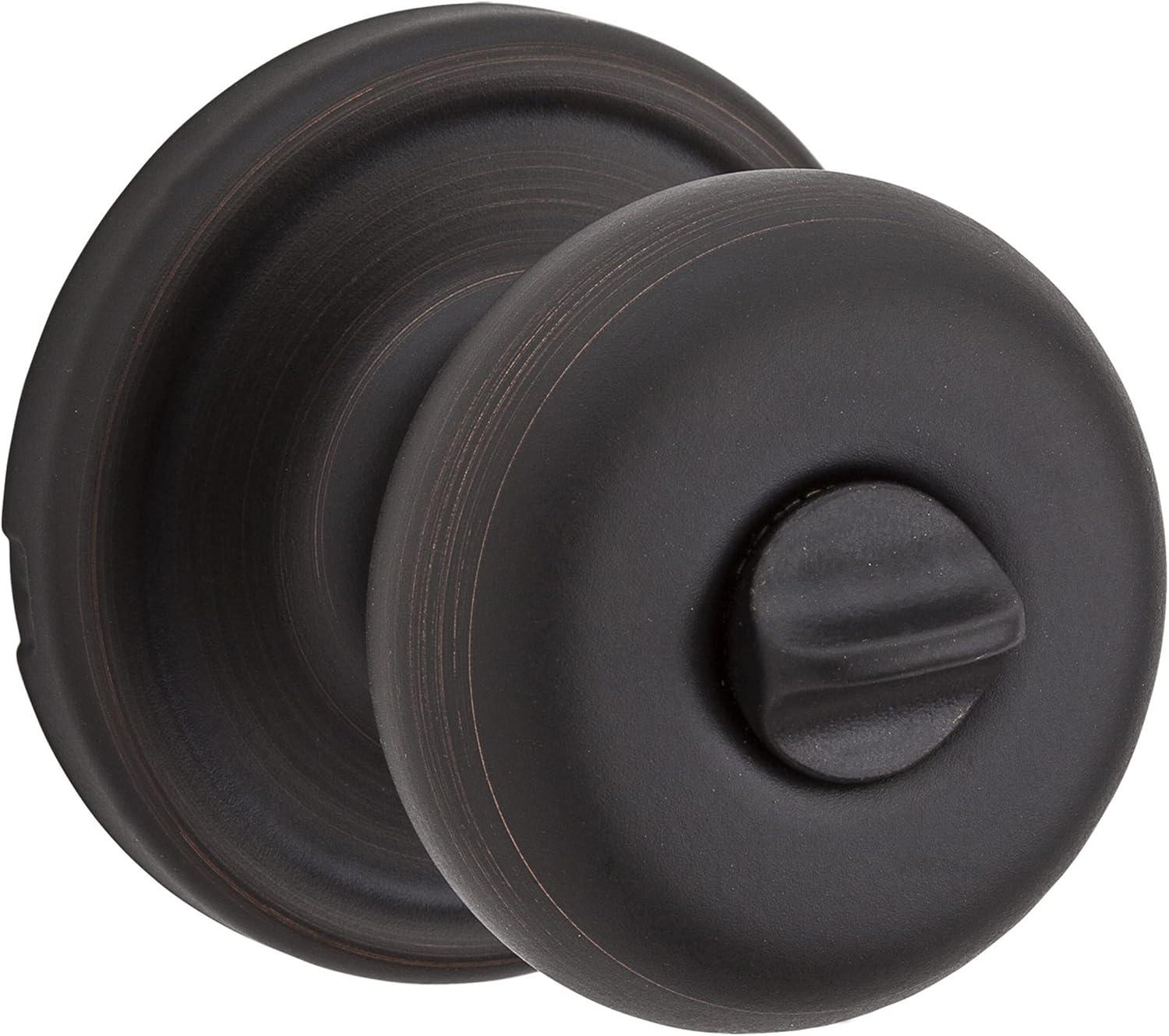 Kwikset Hancock Interior Privacy Door Knob with Lock, Door Handle For Bathroom and Bedroom, Venetian Bronze Keyless Turn Lock Doorknob, with Microban Protection