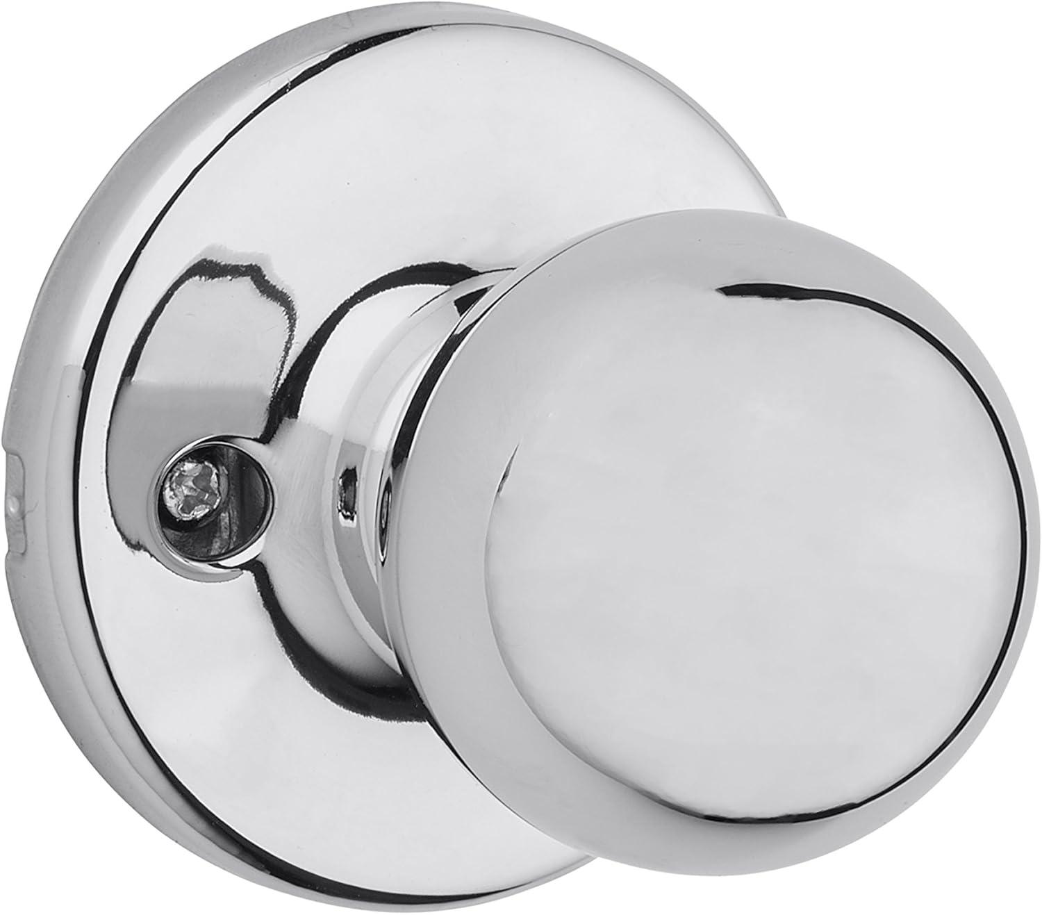 Kwikset Polo Dummy Door Knob, Single Sided Handle for Closets, French Double Doors, and Pantry, Satin Nickel Non-Turning Interior Push/Pull Door Knob, with Microban Protection(Polished Chrome)
