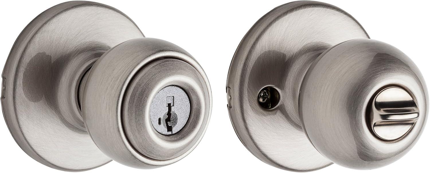 Kwikset Polo Interior Privacy Door Knob with Lock, Door Handle For Bathroom and Bedroom, Satin Nickel Keyless Turn Lock Doorknob, with Microban Protection