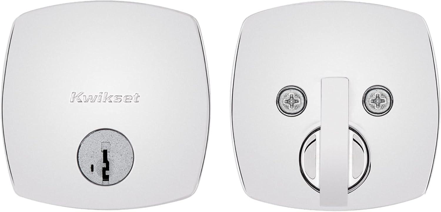 Kwikset Midtown Deadbolt Lock, Matte Black Modern Exterior Keyed Front Entry Door, Pick Resistant SmartKey Rekey Security, Single Cylinder Dead Bolt, with Microban Protection(Polished Chrome)
