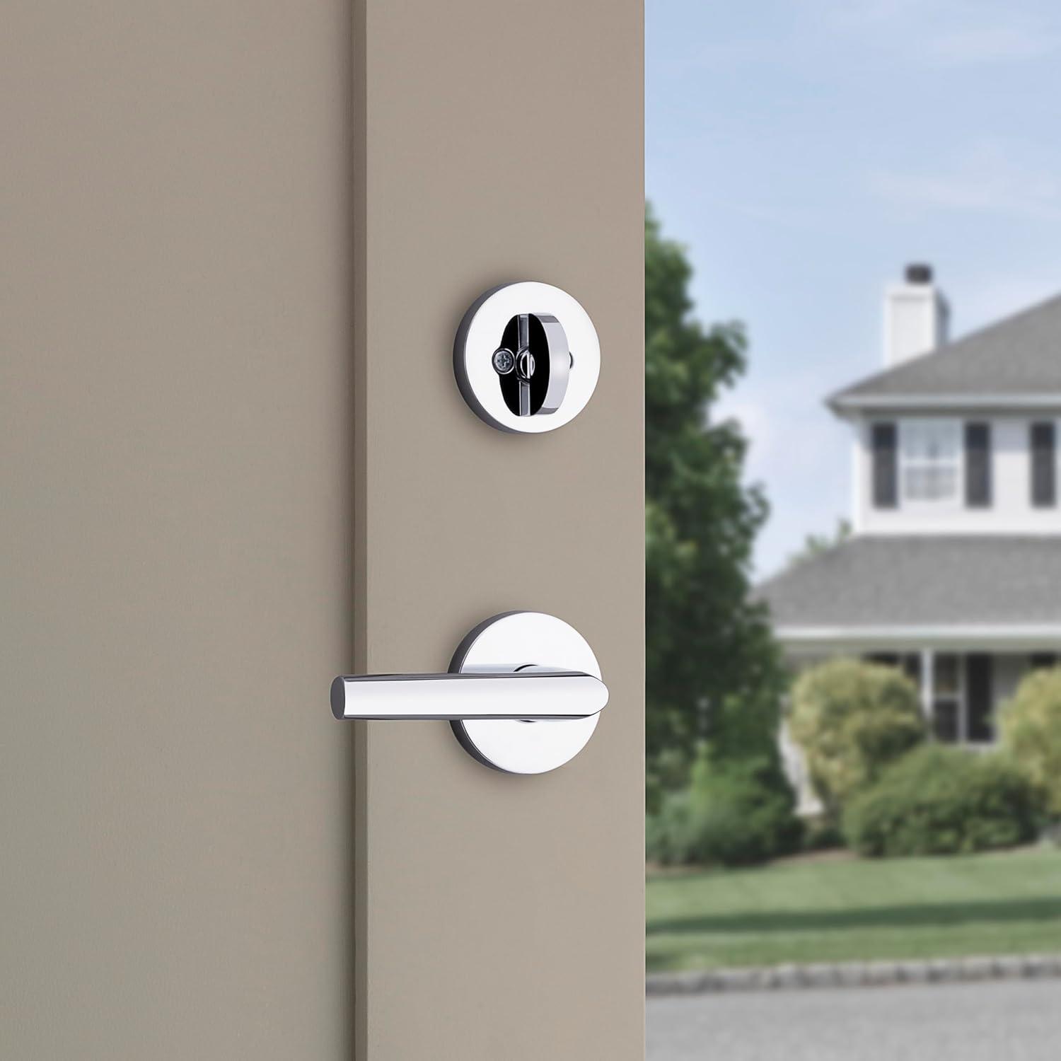 Kwikset Milan Deadbolt Lock, Satin Nickel Round Exterior Keyed Front Entry Door, Pick Resistant SmartKey Rekey Security, Single Cylinder Dead Bolt, with Microban Protection(Polished Chrome)