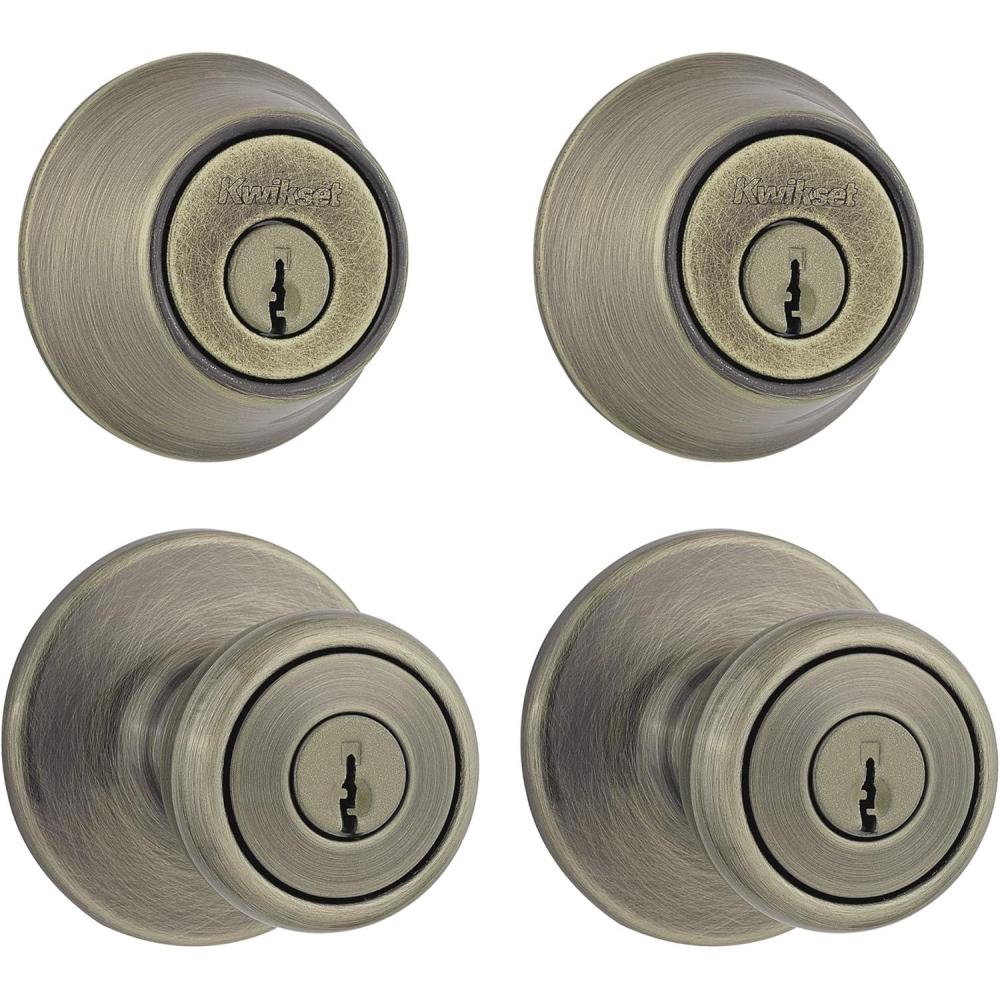 As the industry leader, Kwikset has provided trusted security for over 60 years and has become synonymous with security, peace of mind, style, and innovation. The classic design of the Tylo is at home in any décor. This Combo pack provides two locking points: keyed entry and a deadbolt. The largest-selling deadbolt in America, the 600 series provides tough, effective protection at an affordable price. The complementary Antique Brass finish offers a warm feel with deep accents in the contours of the product.