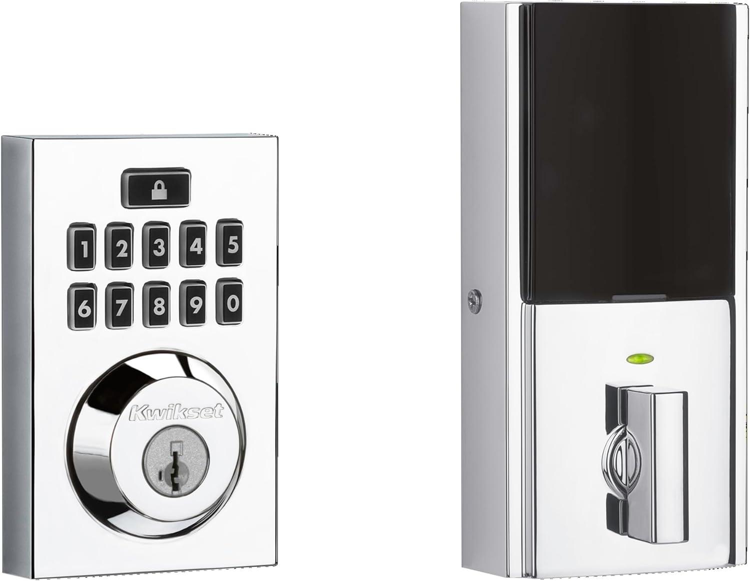 Kwikset 914 Contemporary Keypad SmartCode Electronic Deadbolt Smart Lock featuring SmartKey Security and ZigBee 3.0 Technology in Polished Chrome