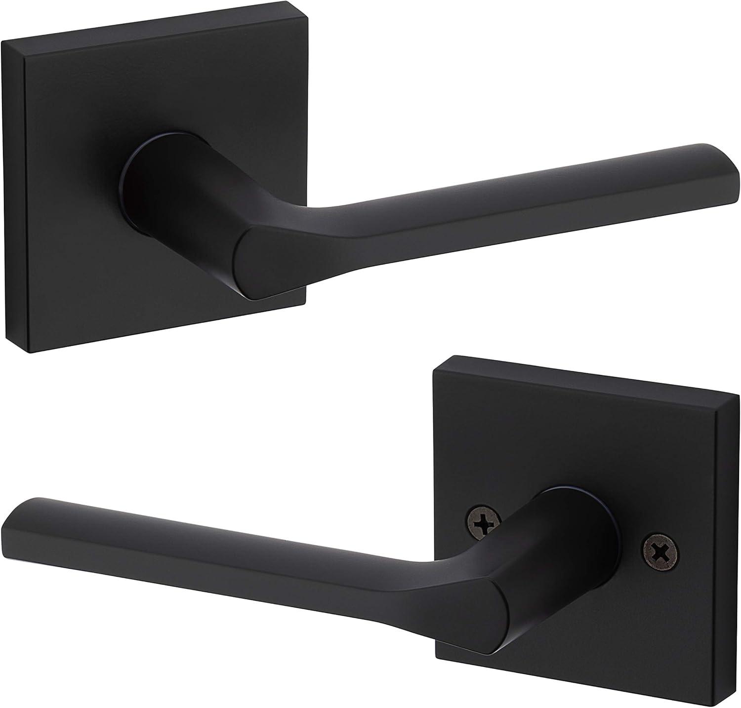 Kwikset 91540-034 Lisbon Door Handle Lever with Modern Contemporary Slim Square Design for Home Hallway or Closet Passage in Iron, Matte Black(Matte Black)