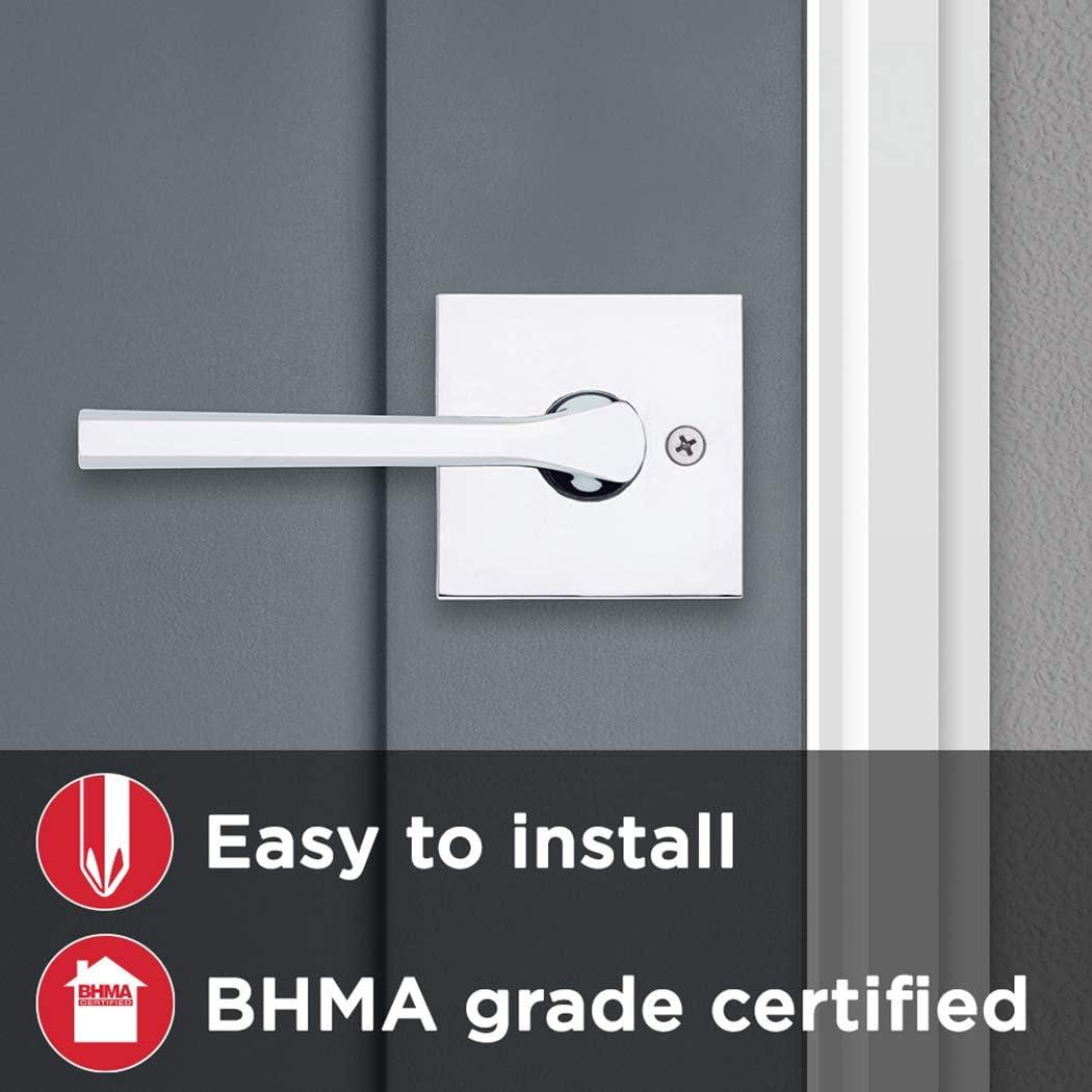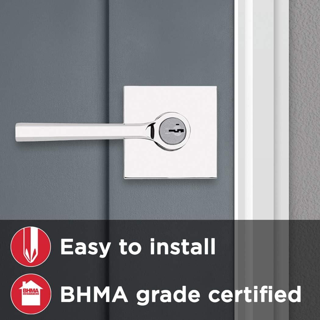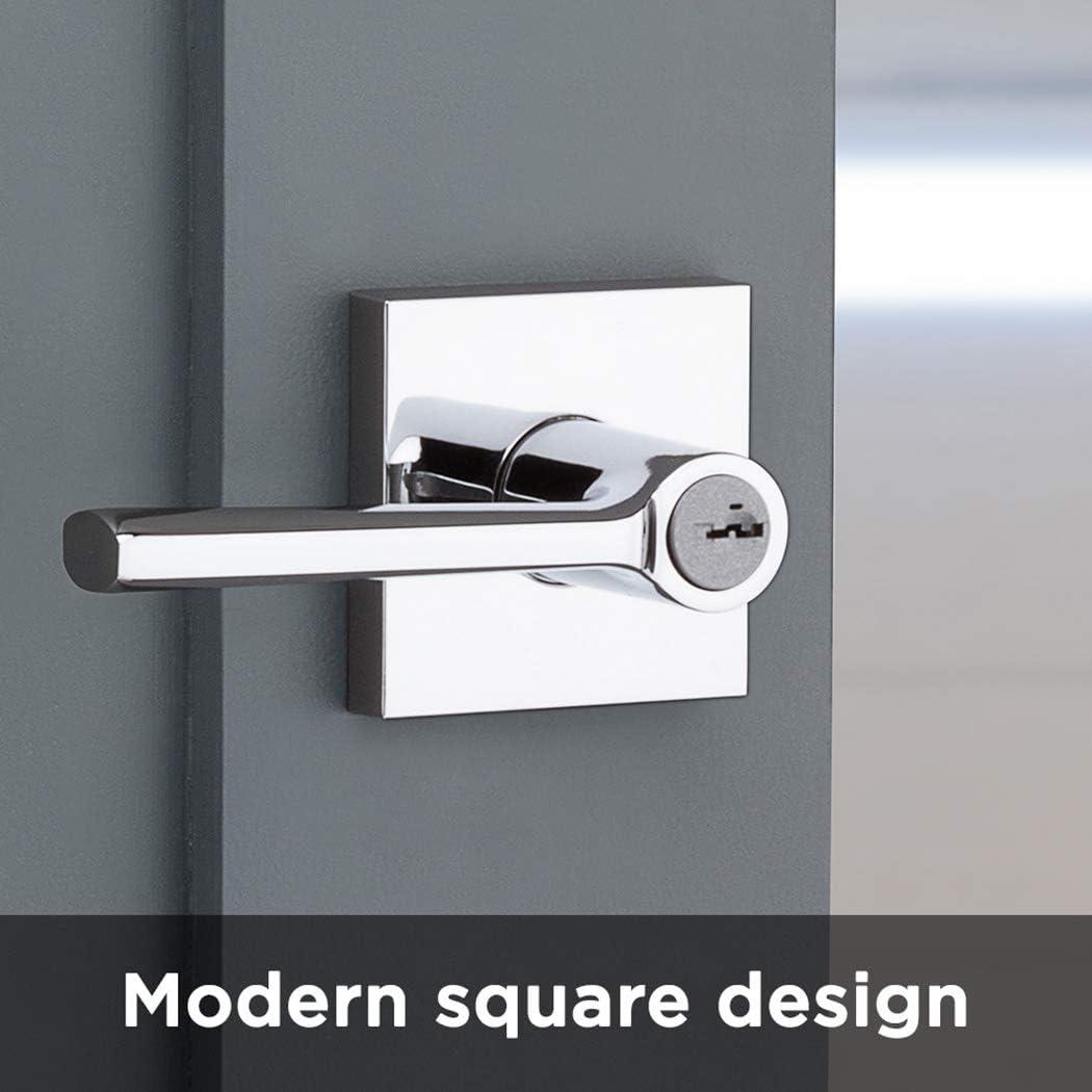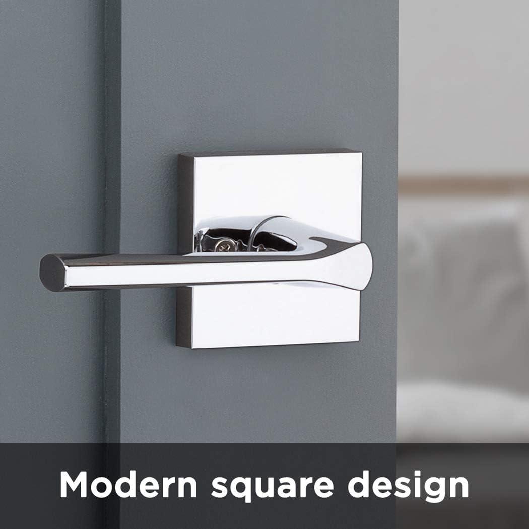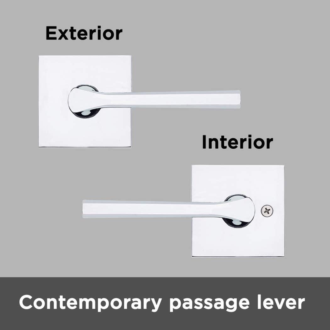 Kwikset 91540-034 Lisbon Door Handle Lever with Modern Contemporary Slim Square Design for Home Hallway or Closet Passage in Iron, Matte Black(Polished Chrome)