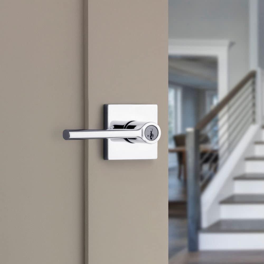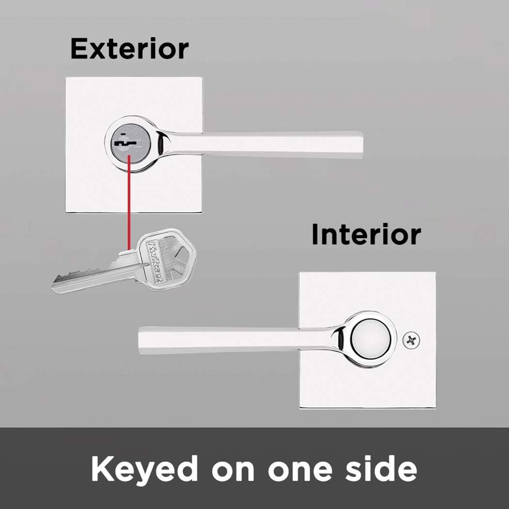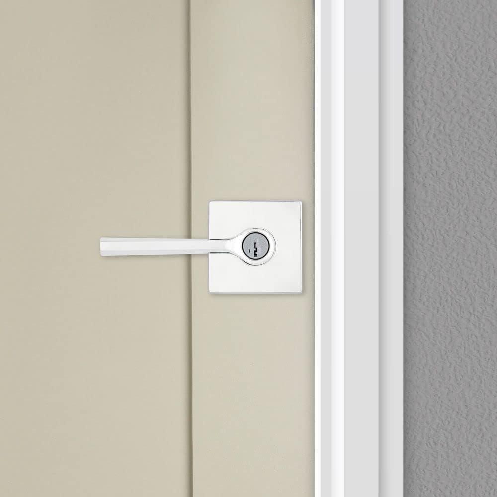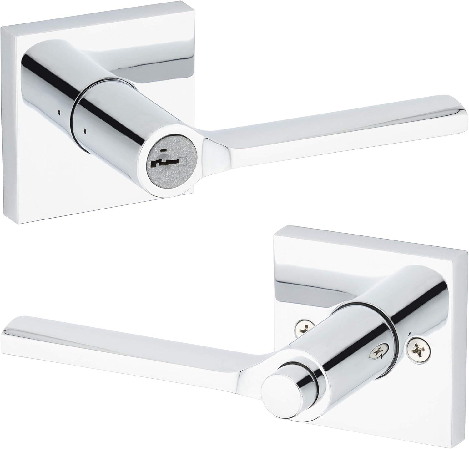Kwikset 91540-034 Lisbon Door Handle Lever with Modern Contemporary Slim Square Design for Home Hallway or Closet Passage in Iron, Matte Black(Polished Chrome)