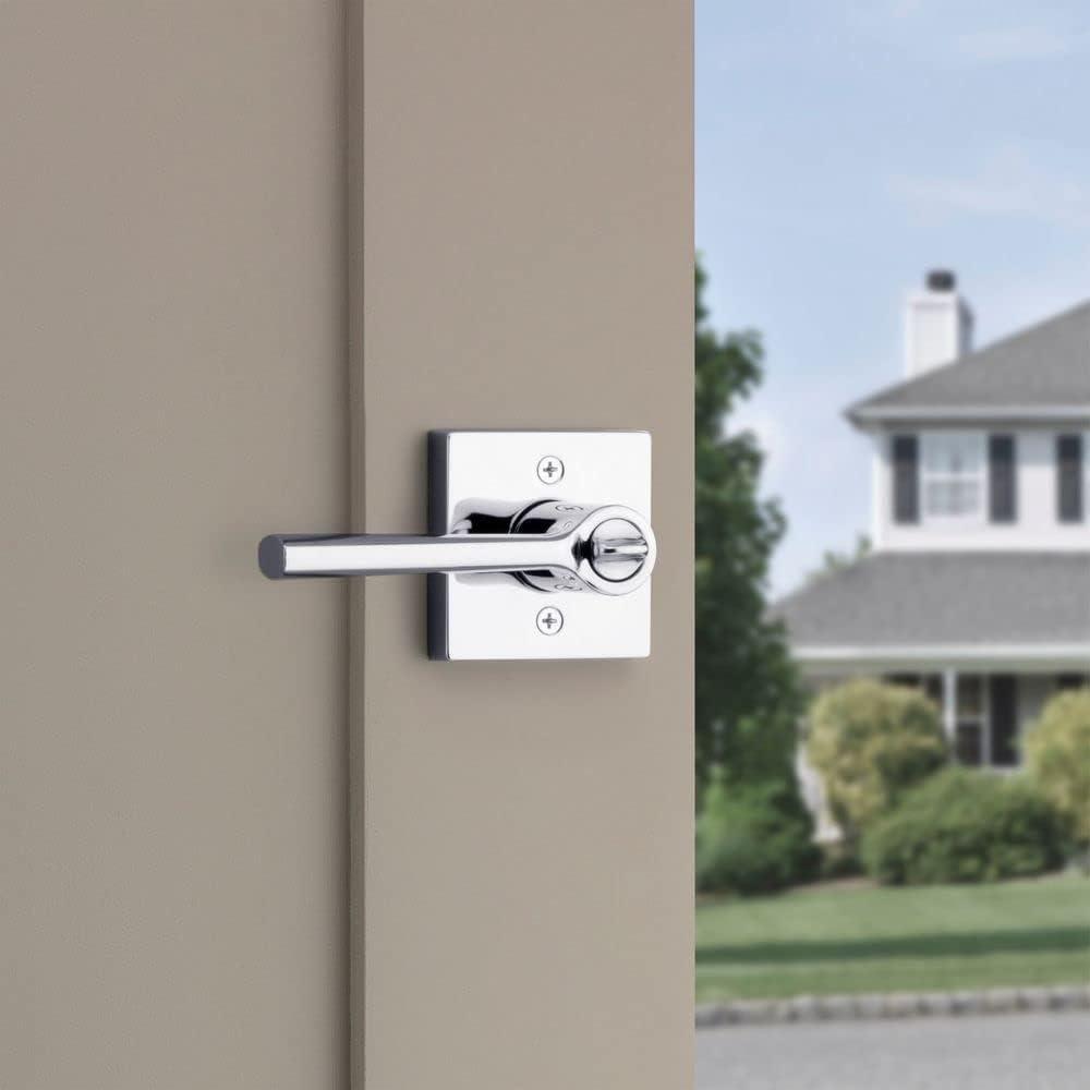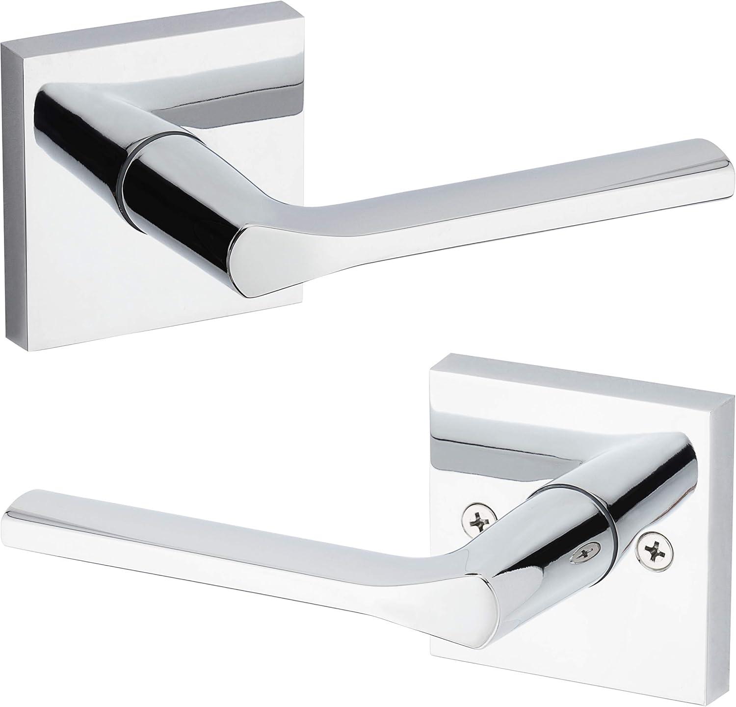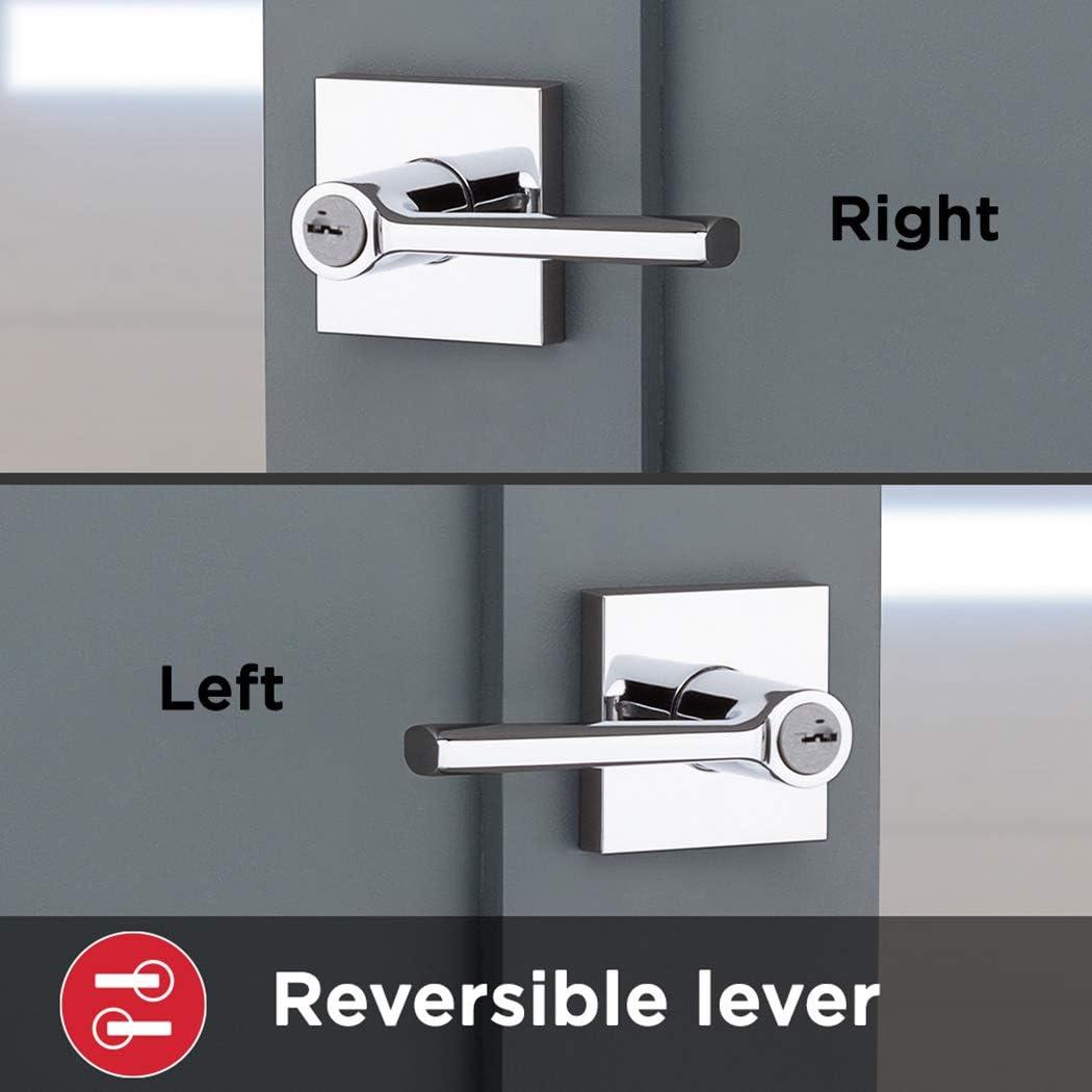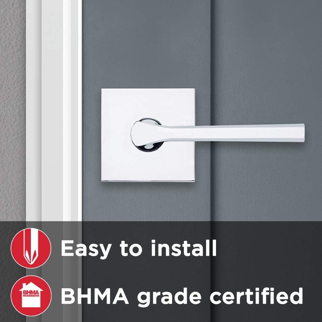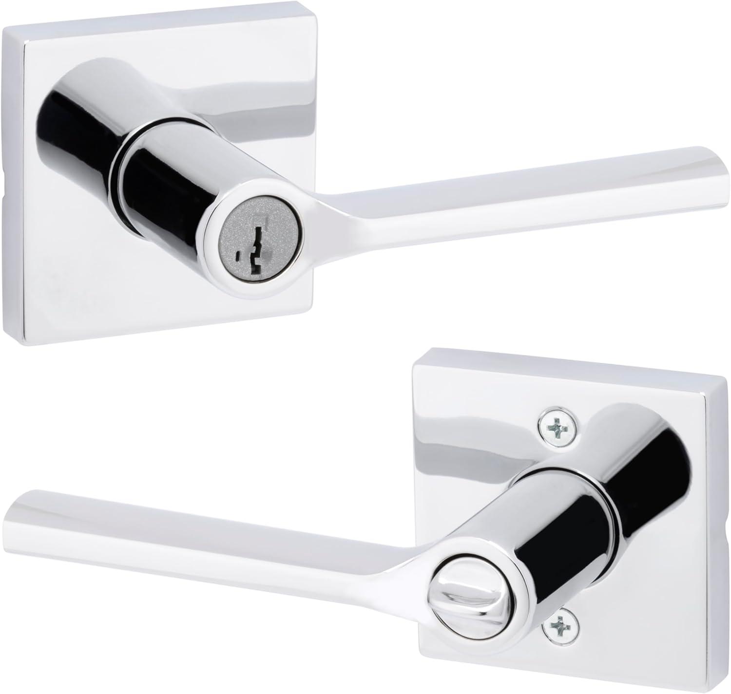 Kwikset 91540-034 Lisbon Door Handle Lever with Modern Contemporary Slim Square Design for Home Hallway or Closet Passage in Iron, Matte Black(Polished Chrome)