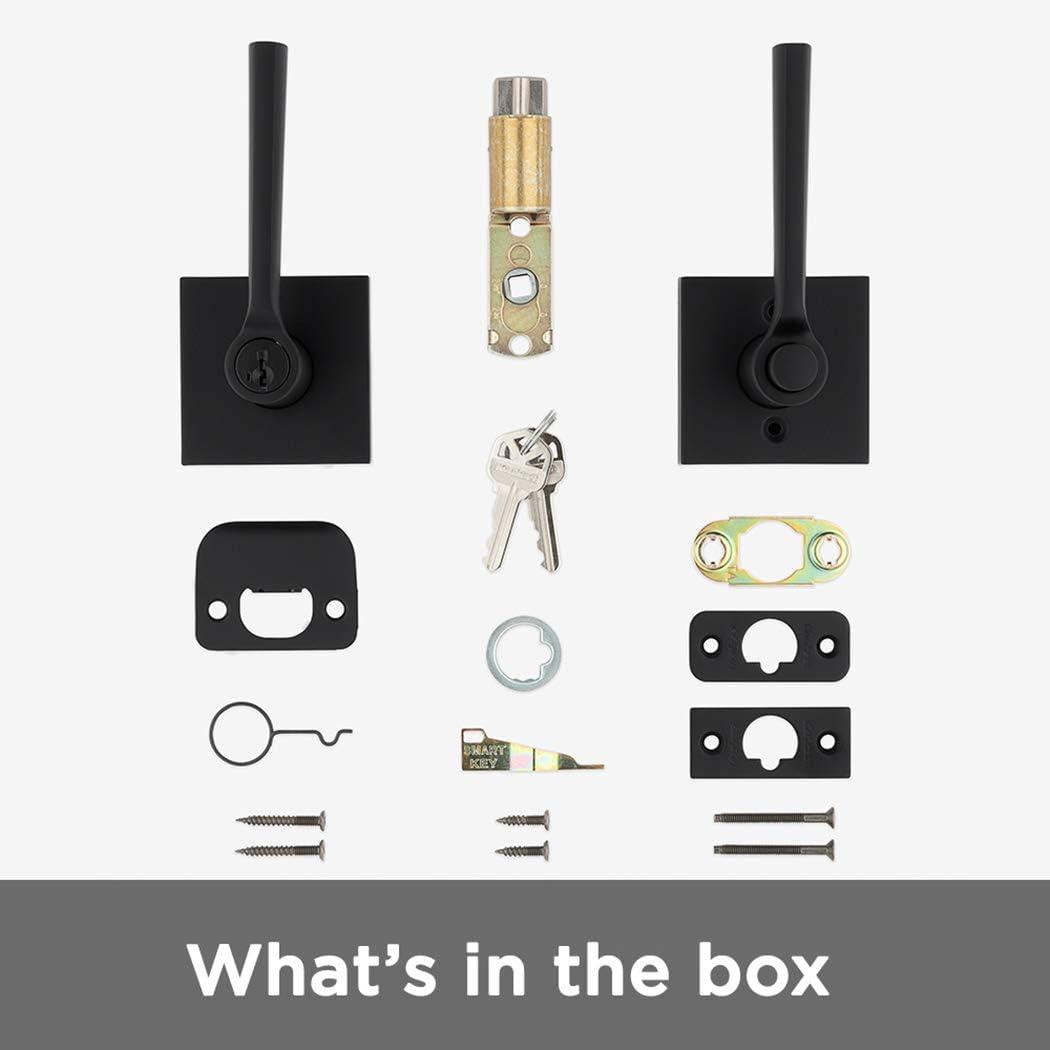 Step up to designer styles and superior security with Kwikset Signature Series products. Lisbon is the quintessential example of contemporary design. The unique thumb rest is precision-crafted for ergonomic comfort and the sleek, tapered contour of the lever brings simple sophistication to any contemporary setting. This passage knob/lever is best used on interior hall and closet applications where no locking is required, so the knob/lever is always free to turn. The knob/lever is reversible and mounts on both left and right handed doors. The rich tones of Iron Black add the finishing touch to this product. The Iron Black finish provides a rich and warm complement to the product's style. Kwikset door handles, door levers, door knobs, deadbolts, and door handlesets are made for the world you live in. These interior door handles match your home whether your decor is modern or traditional. For your next home improvement project choose from satin nickel, polished chrome, polished brass, venetian bronze, or iron black finishes to coordinate with your home furniture and decor. This is style made for the world you live in. Our hardware are designed so that you never have to sacrifice your security for style. Our door hardware is designed to welcome friends and family in and set you apart. They are crafted beyond utility; they are built with style. Because at the end of the day, it's your world and we're here to protect it. Iron black Lisbon door lever can be used on interior doors requiring no locking functionality, such as hallway or closet door handles. Fully reversible contemporary lever, can be installed on both right handed and left handed doors. Modern door handle meets ADA/ANSI A117.1 requirements, ensuring accessibility to all disabled persons. Kwikset passage lever easily installs in minutes with just a screwdriver; this square lever is ANSI/BHMA grade 2 certified. Lifetime mechanical and finish warranty. Kwikset’s door hardware and door handles offer great style for every home. These modern door levers are offered in satin nickel, polished chrome, venetian bronze and iron black. Kwikset passage levers are perfect for hallway or closet doors. Modern door handles work on most standard prepped doors. These Kwikset levers can be installed quickly and installed on left handed and right handed doors. Includes a square passage door lever and installation hardware and instructions. Kwikset door knobs and modern door locks can be used on interior doors.