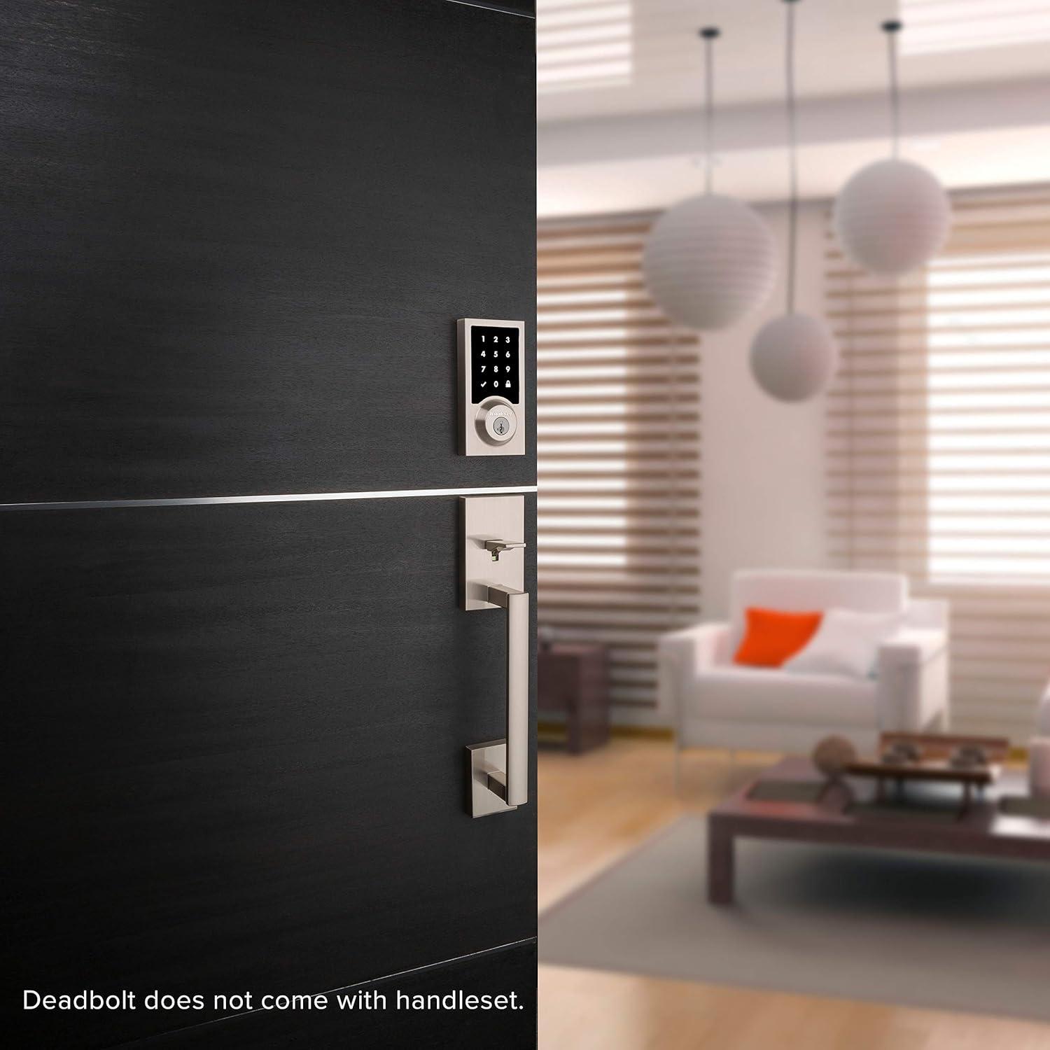 The SmartCode touchscreen smart lock with Home Connect technology enables the lock to wirelessly communicate with other devices in home. The lock allows the user (through a web enabled device) to remotely check the door lock status, lock or unlock the door and receive notifications. SmartCode is a one-touch locking motorized deadbolt. With your personalized code, you can enter your home with the convenience of keyless entry and the back-lit keypad provides increased visibility. It features patented SecureScreen™ technology to prevent code detection from fingerprints on the touchscreen. SmartCode is easy to install, program and use, and operates on 4 AA batteries. It also features SmartKey Security as the back-up keyway. This single cylinder deadbolt can be locked or unlocked by using the keypad or key from the outside as well as the turn button from the inside. The crisp, clean appearance of the Satin Nickel finish adds to the overall look of the product and brings a modern feel. Kwikset smartcode dead bolts are available as smart locks and as electronic deadbolts to provide keyless entry and access for your daily life similar to our Kwikset Kevo door lock. Our Kwikset locks come with patented Kwikset only security features including- Kwikset smartkey security and SecureScreen. Our front door locks are the smart choice whether you are searching for a keypad lock or a touchscreen lock with multiple finishes including satin nickel, venetian bronze, and polished chrome. From august to december Kwikset deadbolts are the locks for year-round keyless entry. Kwikset smartcode home connect means our kwikset z wave locks works with amazon alexa, smartthings, and wink smart home hubs for smart home automation.