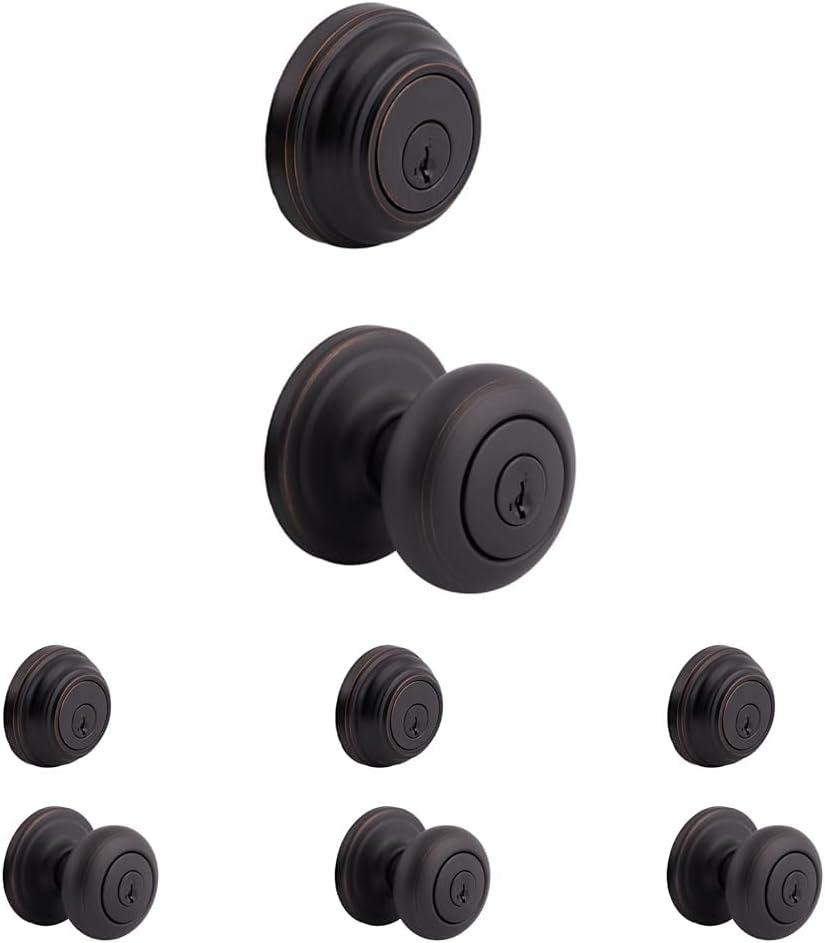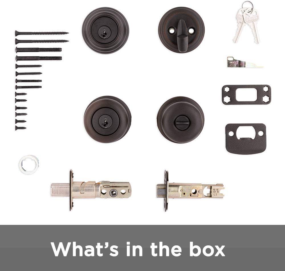 Kwikset 99910-035 Juno Entry Door Knob and Single Cylinder Deadbolt Combo Pack, 3, Venetian Bronze(Venetian Bronze)