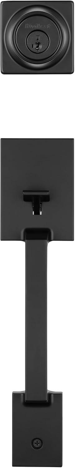 Kwikset Amador Front Door Lock Handle and Deadbolt Set, Entry Handleset Exterior with Casey Reversible Lever, Matte Black, Pick Resistant SmartKey Rekey Deadbolt Security, with Microban Protection(Matte Black)