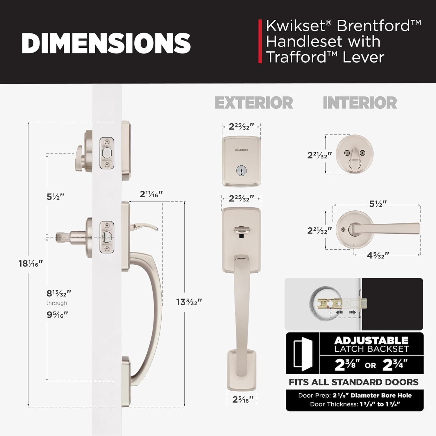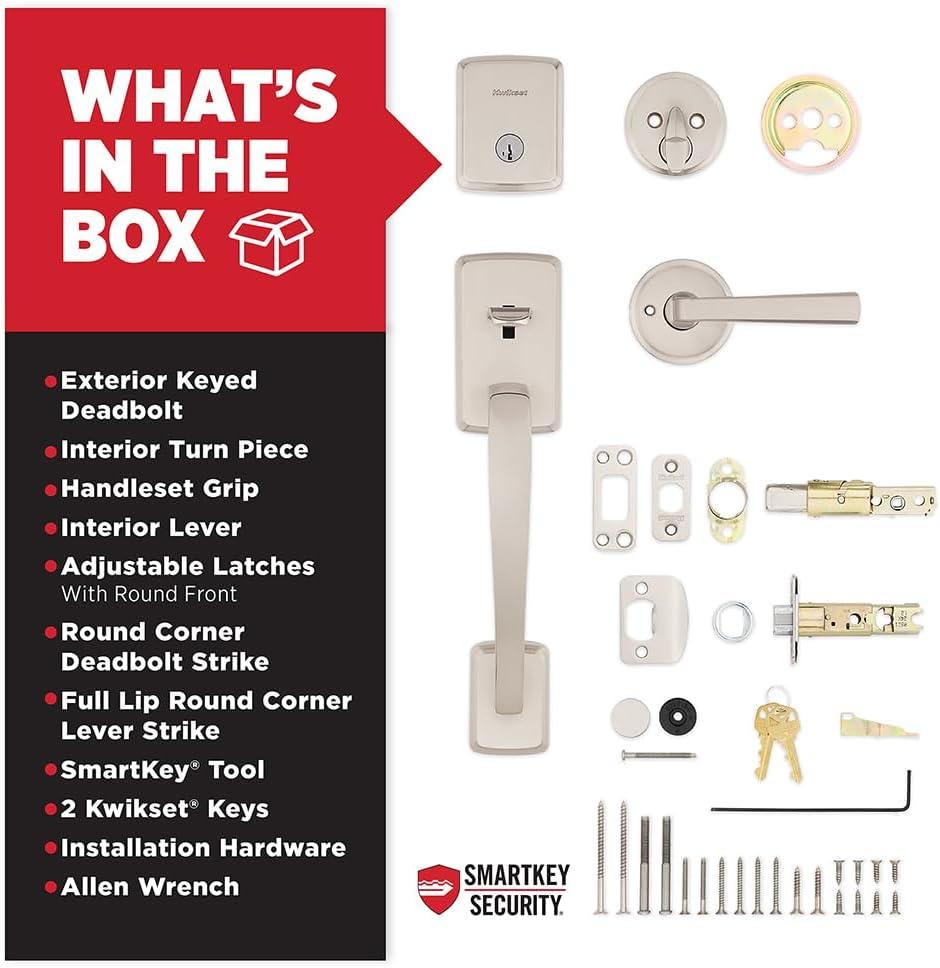 Kwikset Brentford Front Door Lock Handle and Deadbolt Set, Entry Handleset with Trafford Reversible Lever, Matte Black, Pick Resistant SmartKey Rekey Deadbolt Security, with Microban Protection(Satin Nickel)