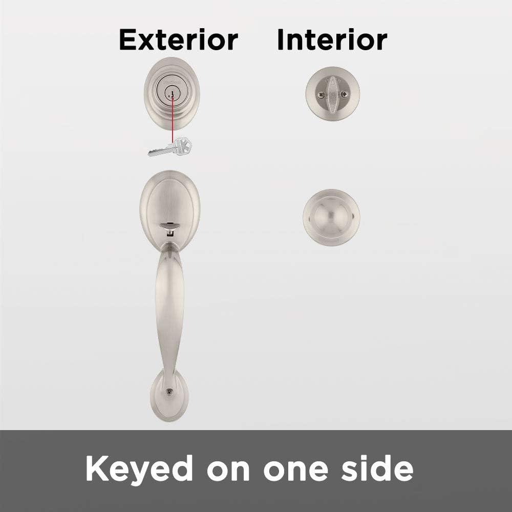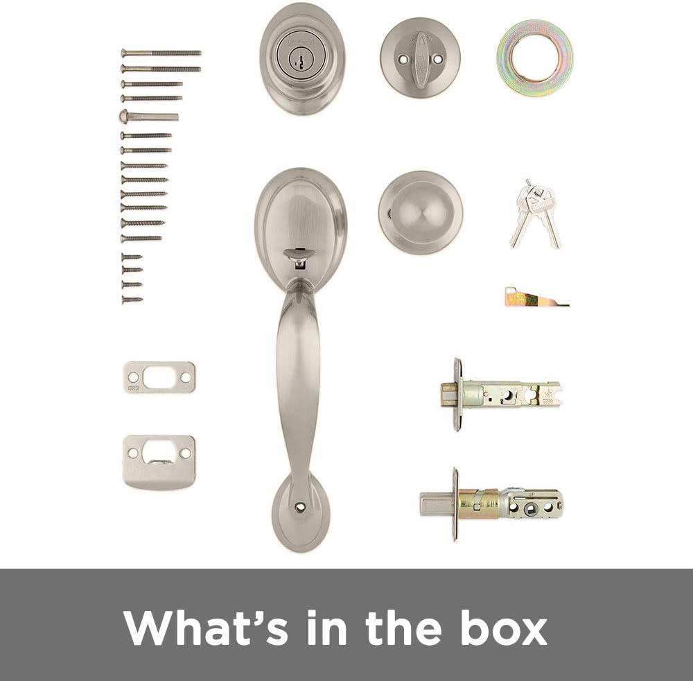 Kwikset Dakota Front Door Lock Handle and Deadbolt Set, Entry Handleset Exterior with Interior Door Knob, Satin Nickel, Pick Resistant SmartKey Rekey Deadbolt Security(Satin Nickel)