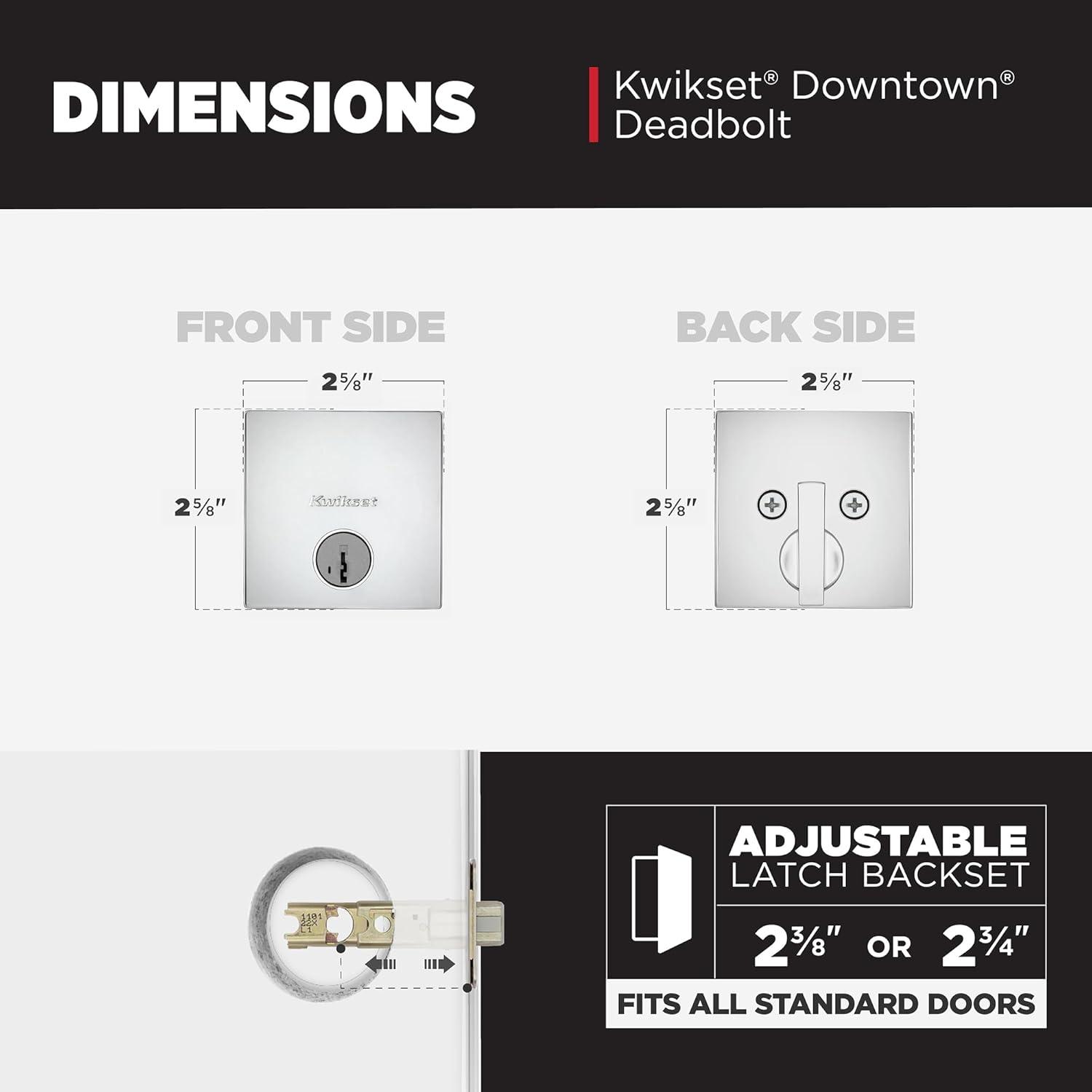 Kwikset Downtown Deadbolt Lock, Satin Brass Square Exterior Keyed Front Entry Door, Pick Resistant SmartKey Rekey Security, Single Cylinder Dead Bolt, with Microban Protection(Polished Chrome)