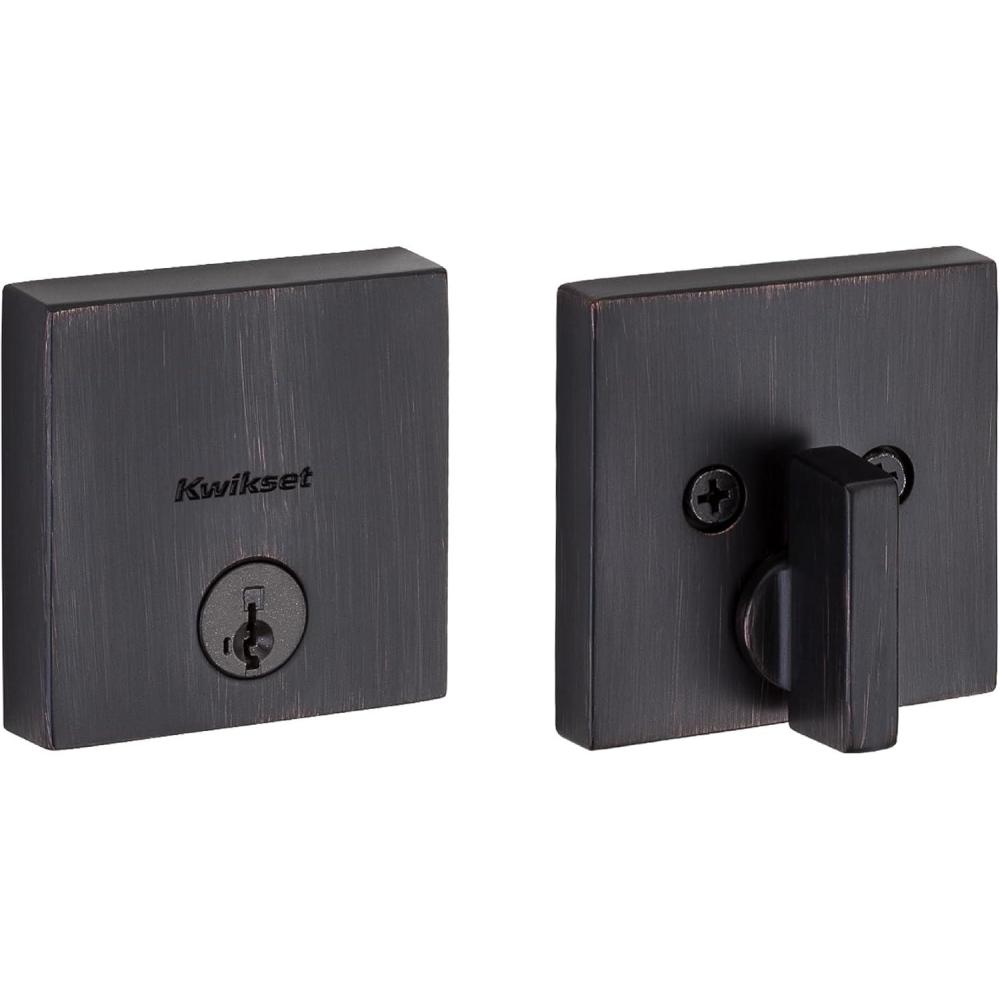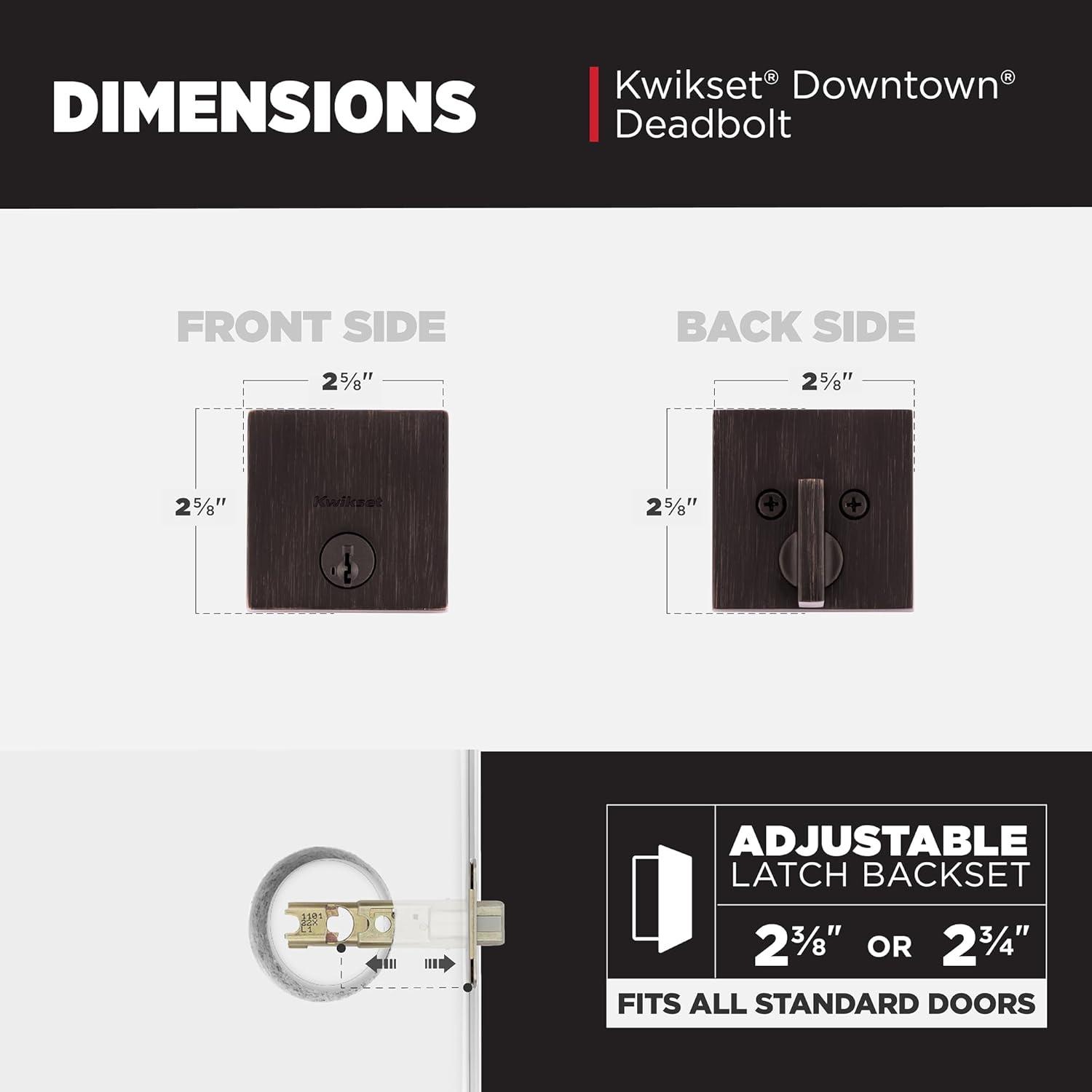 Kwikset Downtown Deadbolt Lock, Satin Brass Square Exterior Keyed Front Entry Door, Pick Resistant SmartKey Rekey Security, Single Cylinder Dead Bolt, with Microban Protection(Venetian Bronze)