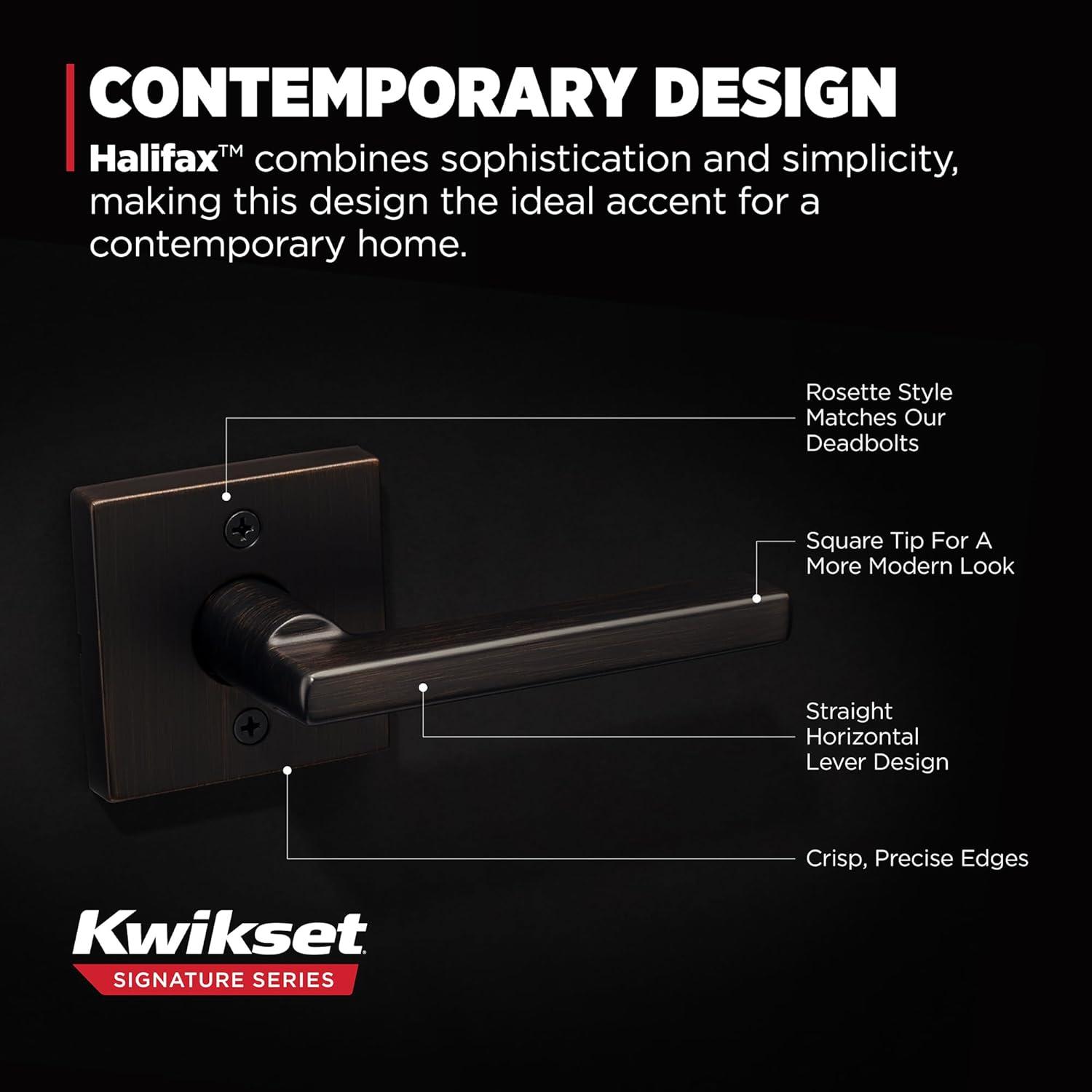 Step up to designer styles and superior security with Kwikset Signature Series products. Halifax combines sophistication and simplicity, making this design the ideal accent for a contemporary home. Both levers/knobs can be operated by a key on the outside or thumb turn on the inside. The textured finish of Satin Brass gives it a refined, rustic look.