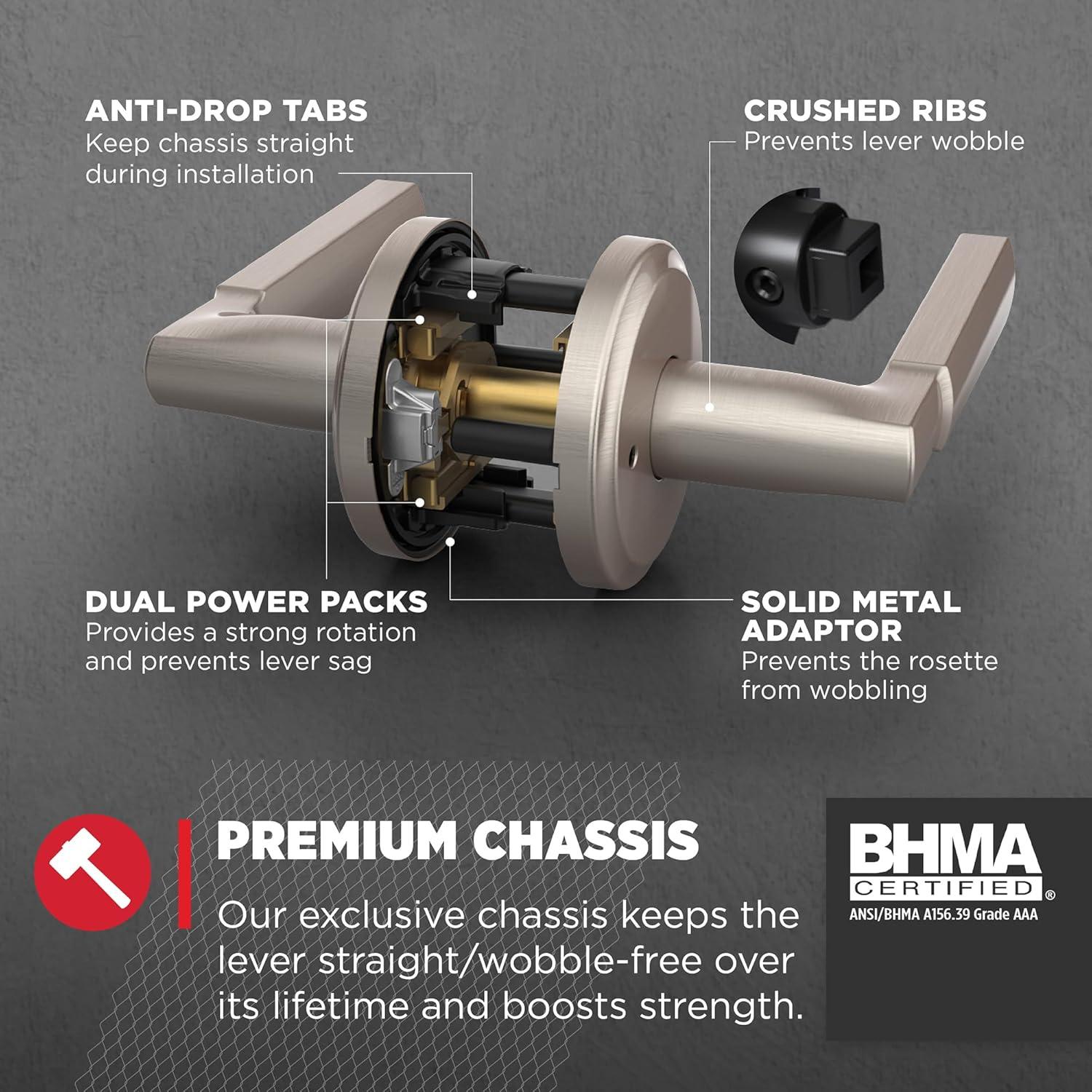 EASY INSTALL REVERSIBLE LEVER: Do it yourself, installs in minutes with just a screwdriver. Reversible handle for left- or right-handed doors, detailed directions provided
