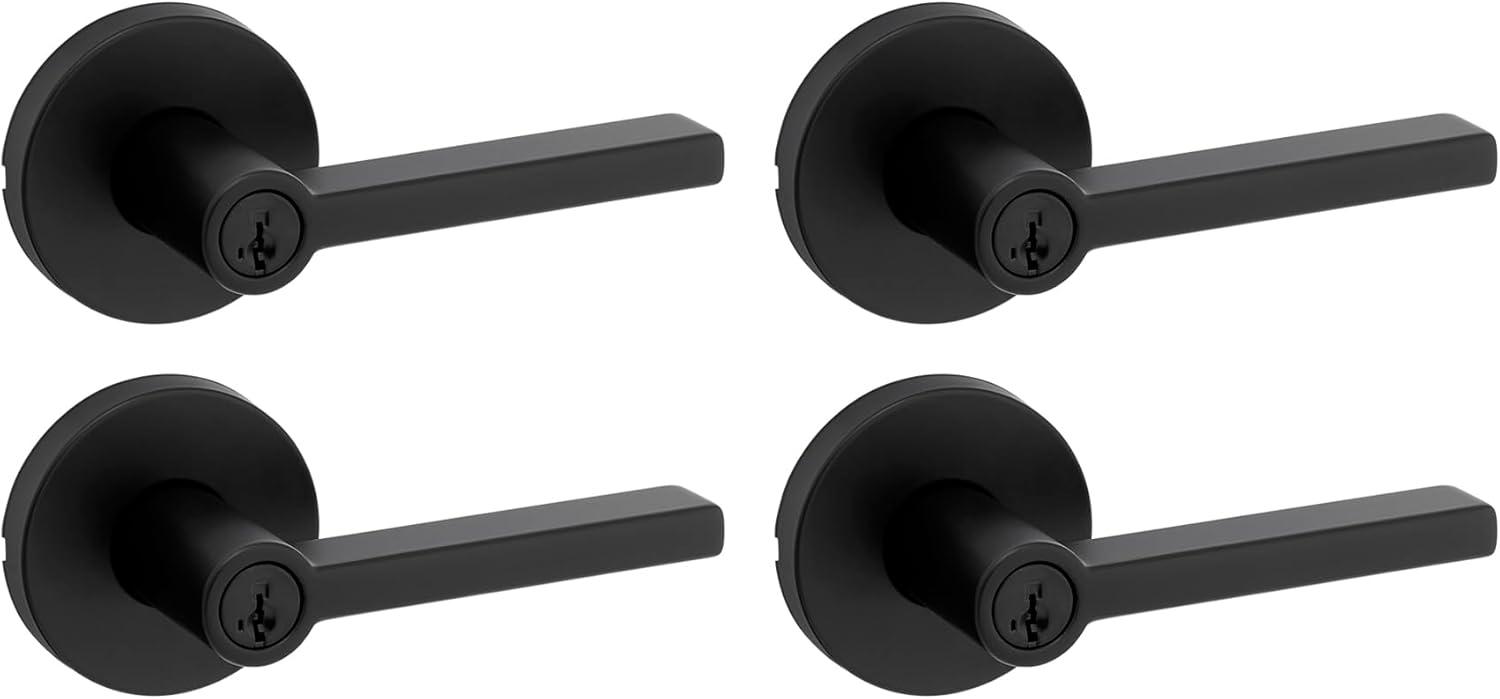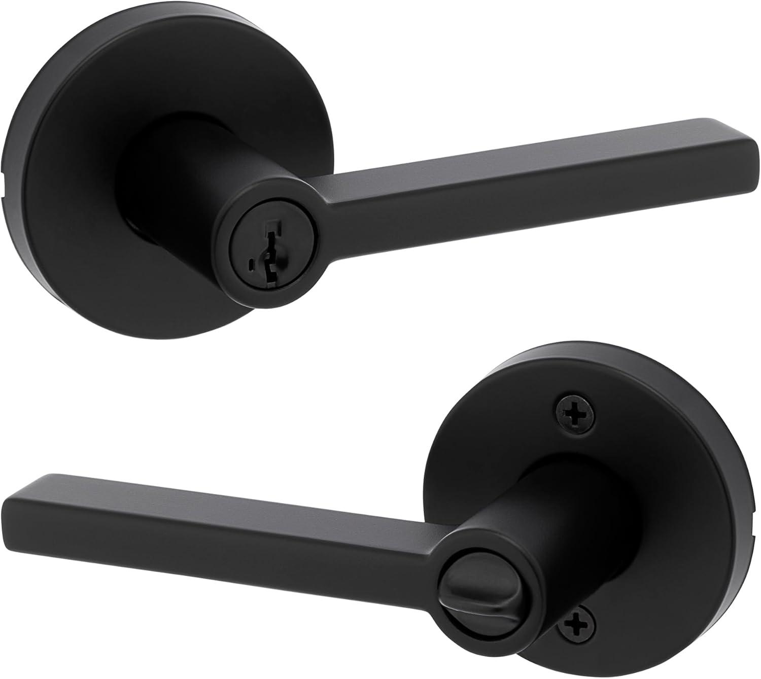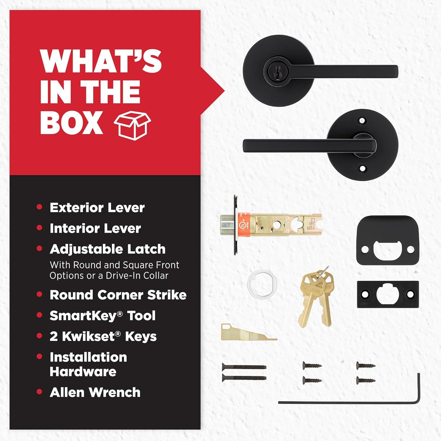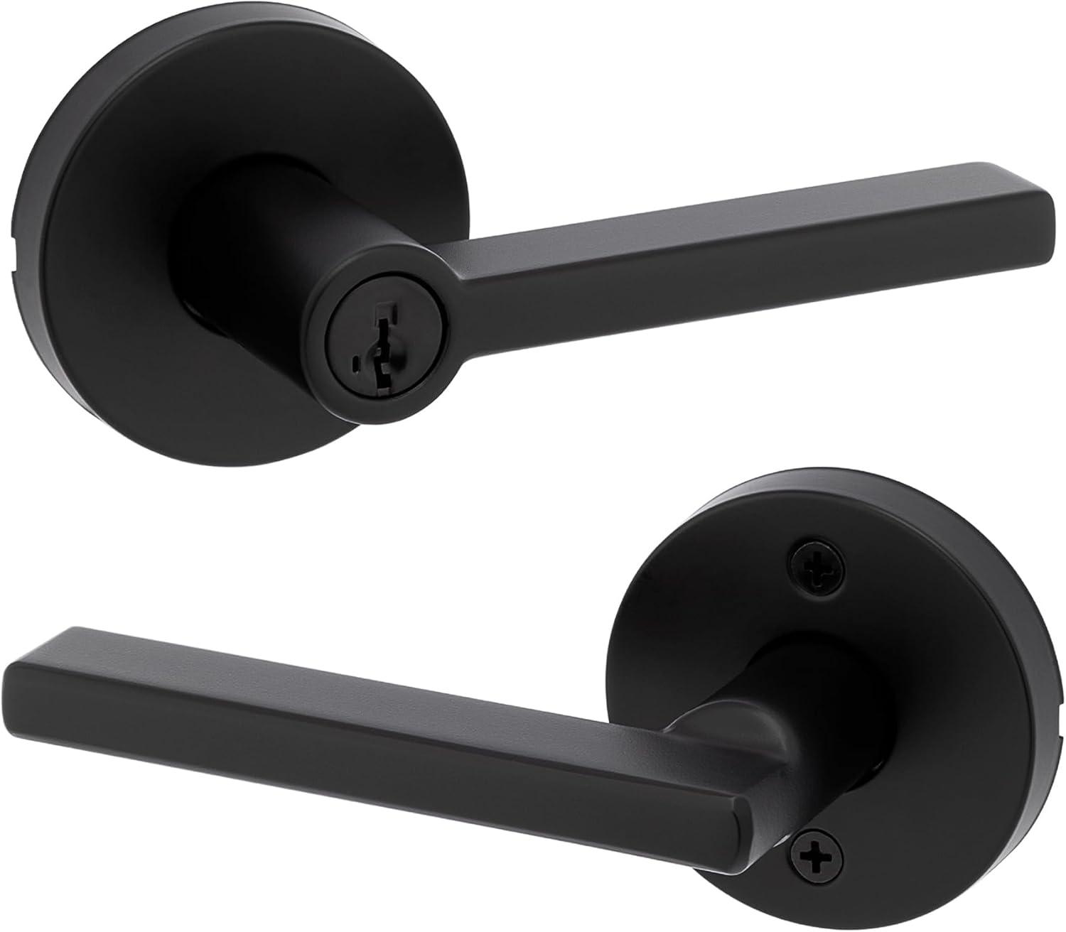 Kwikset Halifax Entry Door Handle with Lock and Key, Secure Keyed Reversible Lever Exterior, for Front Entrance and Bedrooms, Satin Brass, Pick Resistant Smartkey Rekey Security and Microban(Matte Black)