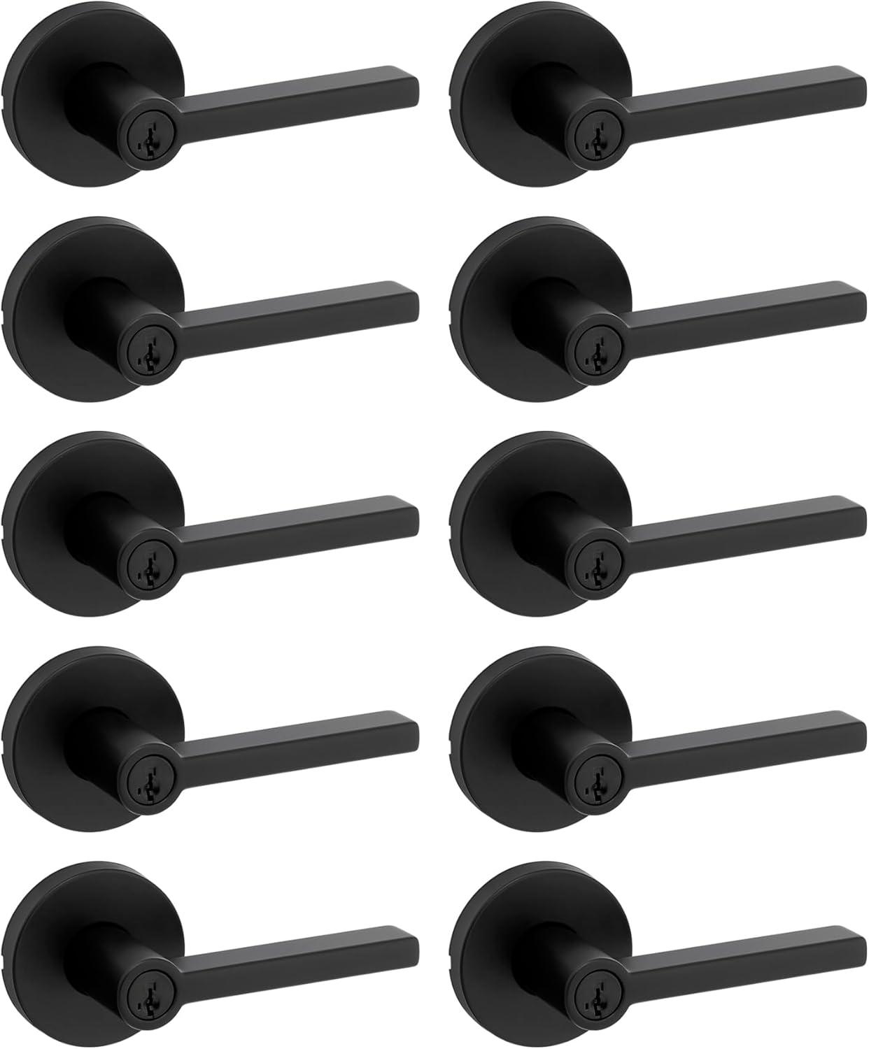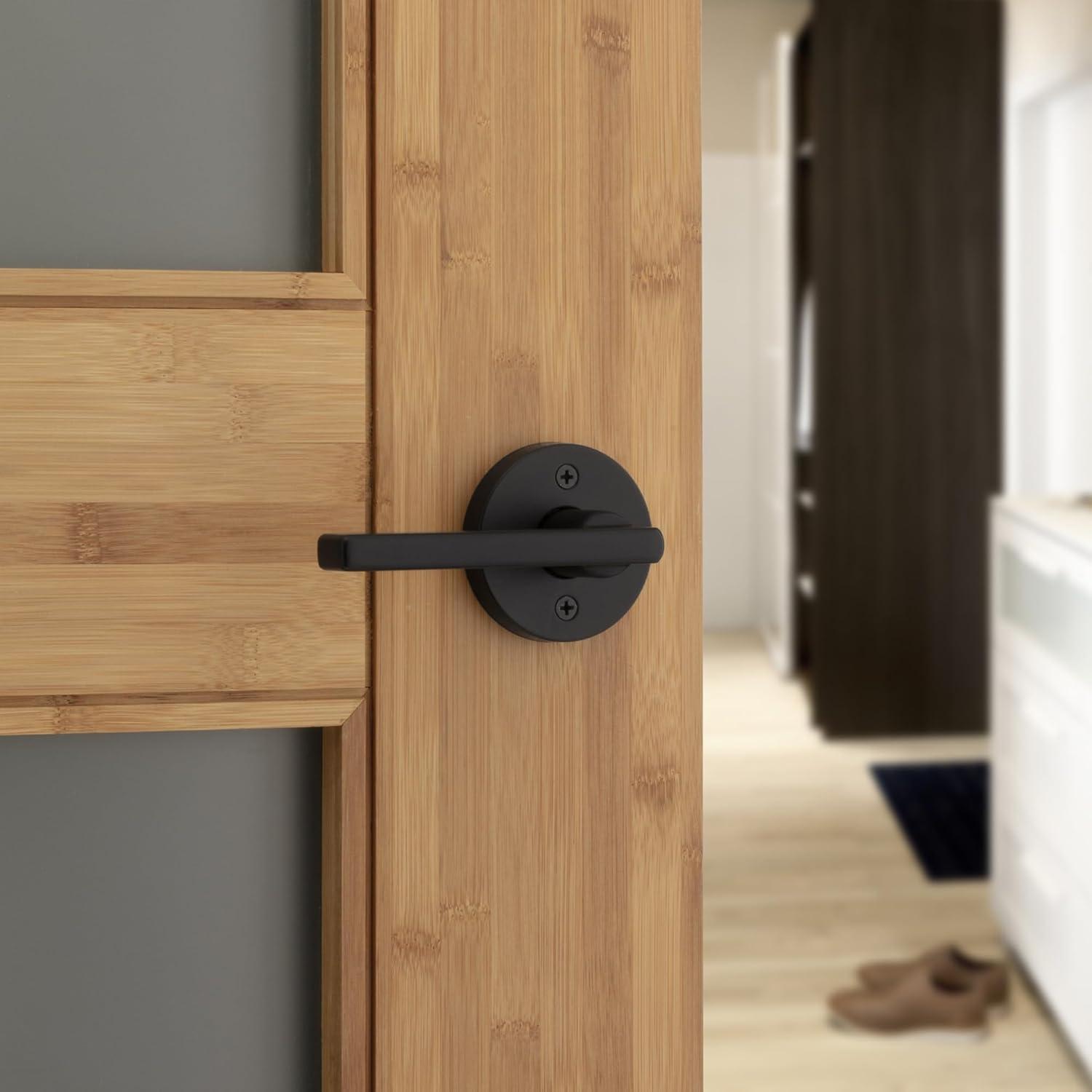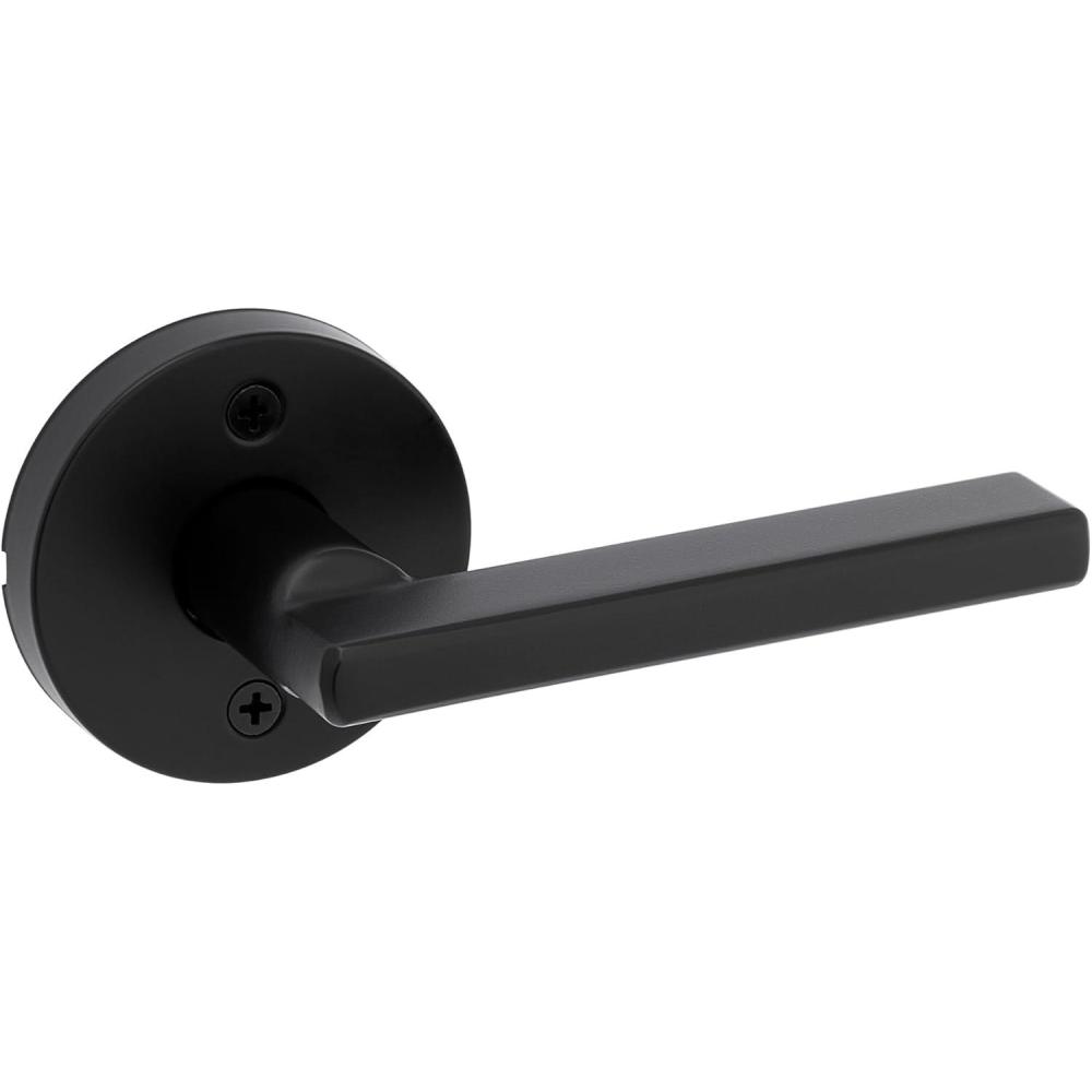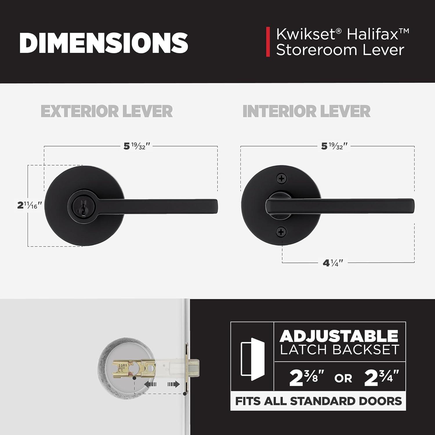 Kwikset Halifax Entry Door Handle with Lock and Key, Secure Keyed Reversible Lever Exterior, for Front Entrance and Bedrooms, Satin Brass, Pick Resistant Smartkey Rekey Security and Microban(Matte Black)
