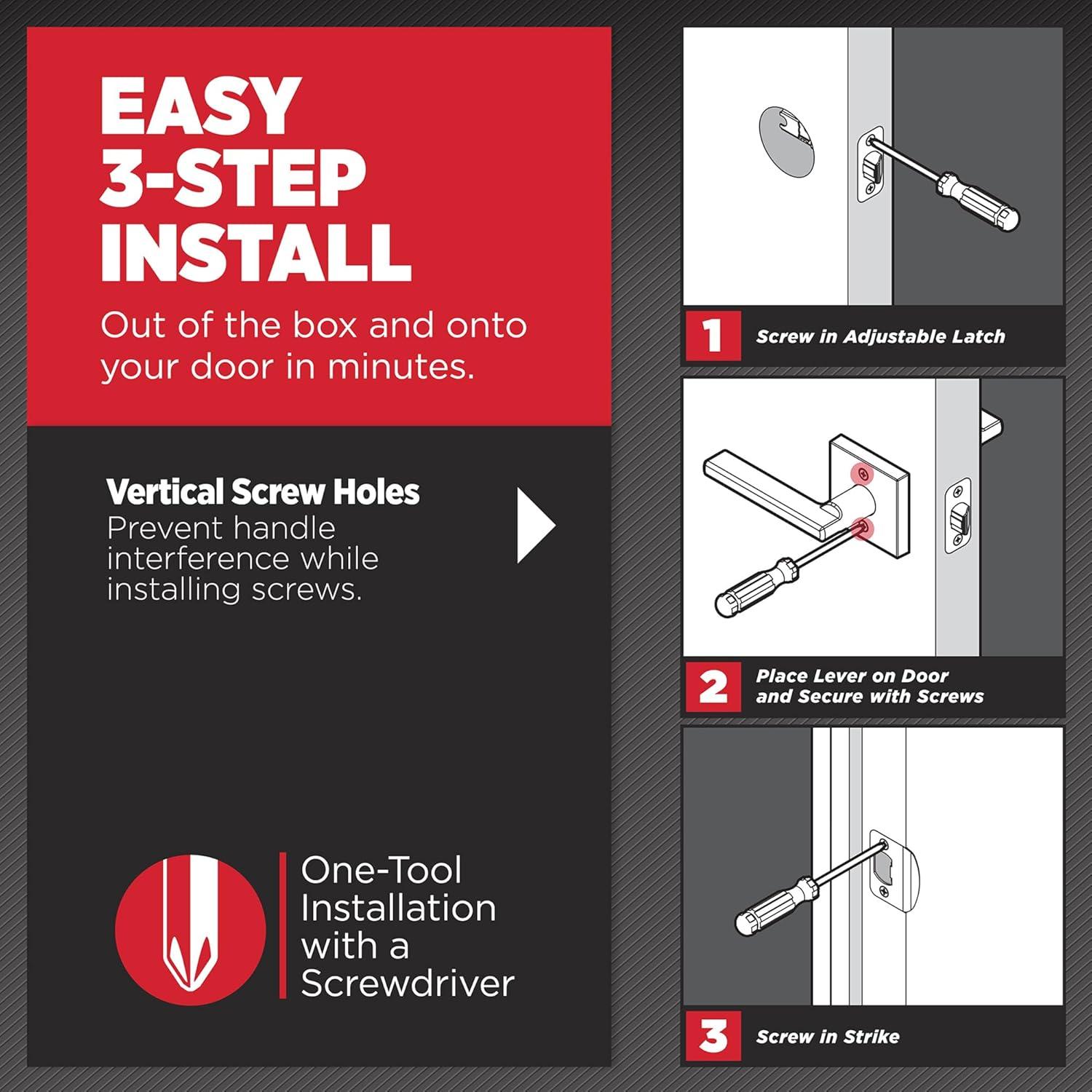 EASY INSTALL REVERSIBLE LEVER: Do it yourself, installs in minutes with just a screwdriver. Reversible handle for left- or right-handed doors, detailed directions provided