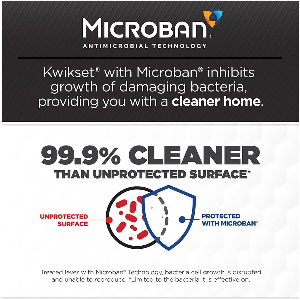 MICROBAN PROTECTION: Kwikset’s door hardware is treated with Microban, this offers powerful product protection that is 99.9% cleaner than an unprotected surface