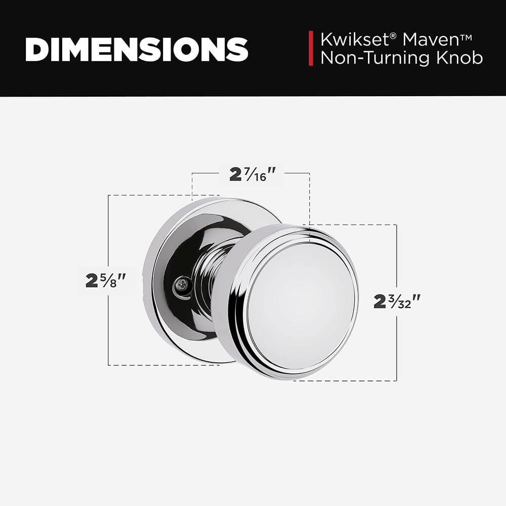 Kwikset Maven Dummy Door Knob, Single Sided Handle for Closets, French Double Doors, and Pantry, Polished Chrome Non-Turning Round Interior Push/Pull Door Knob, with Microban Protection