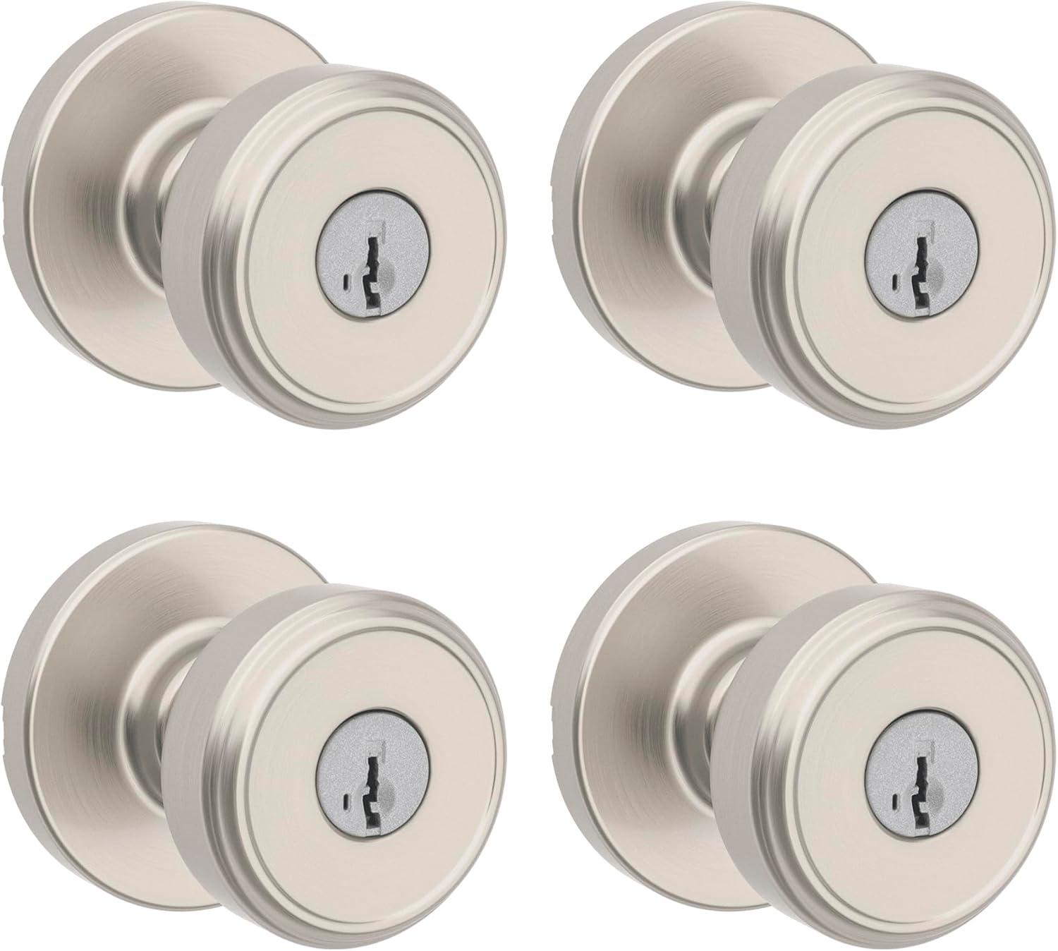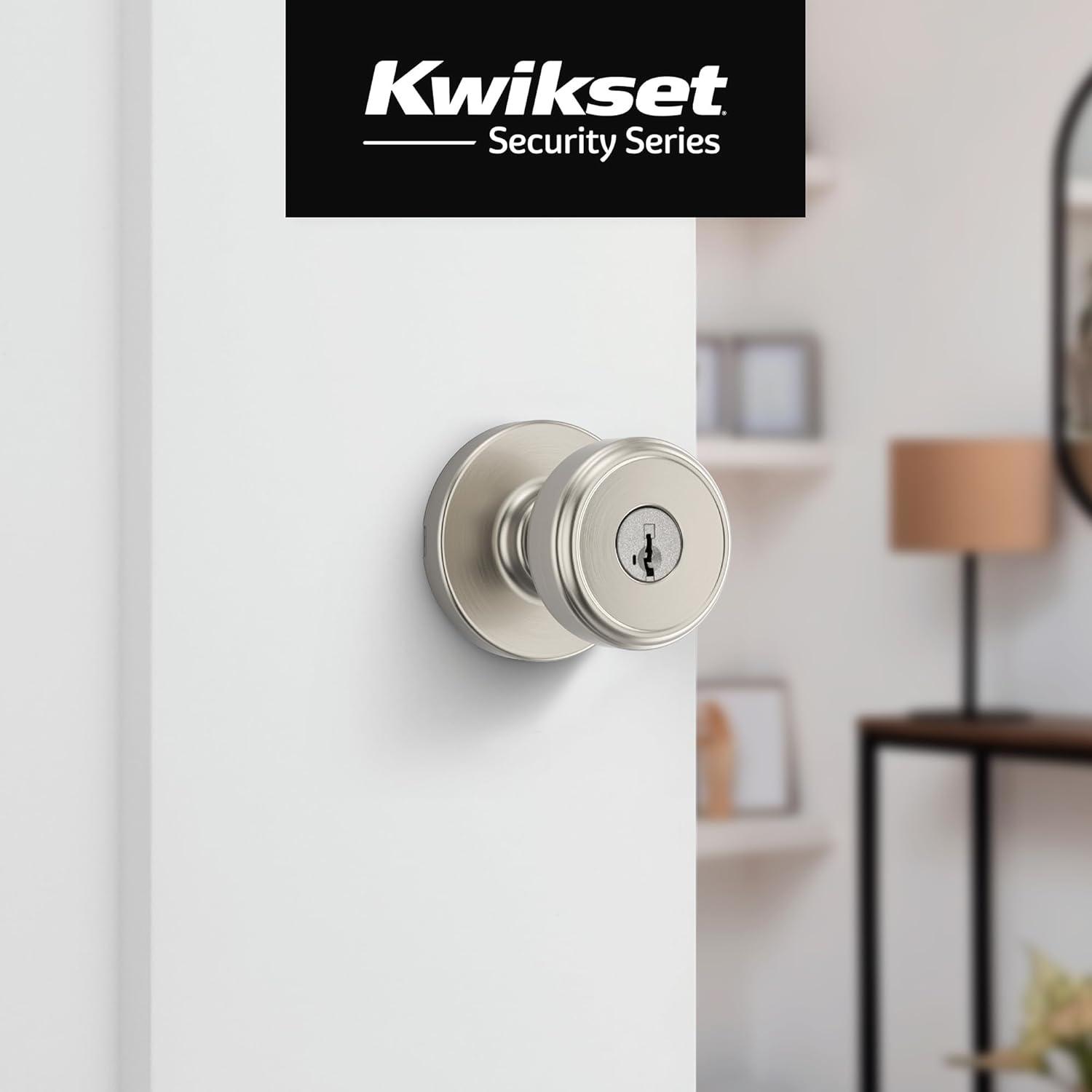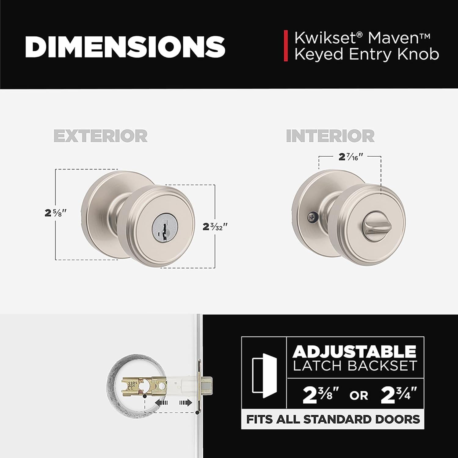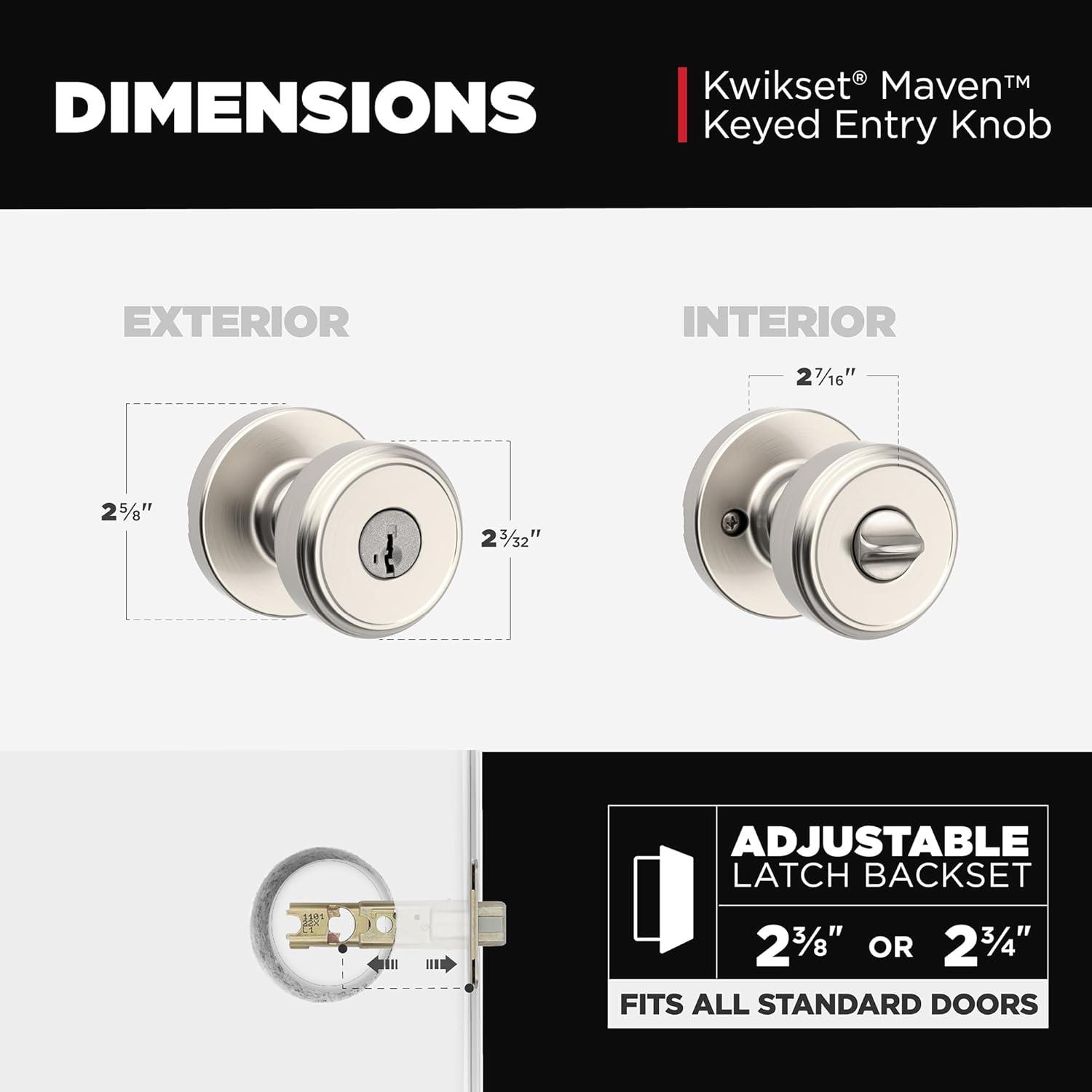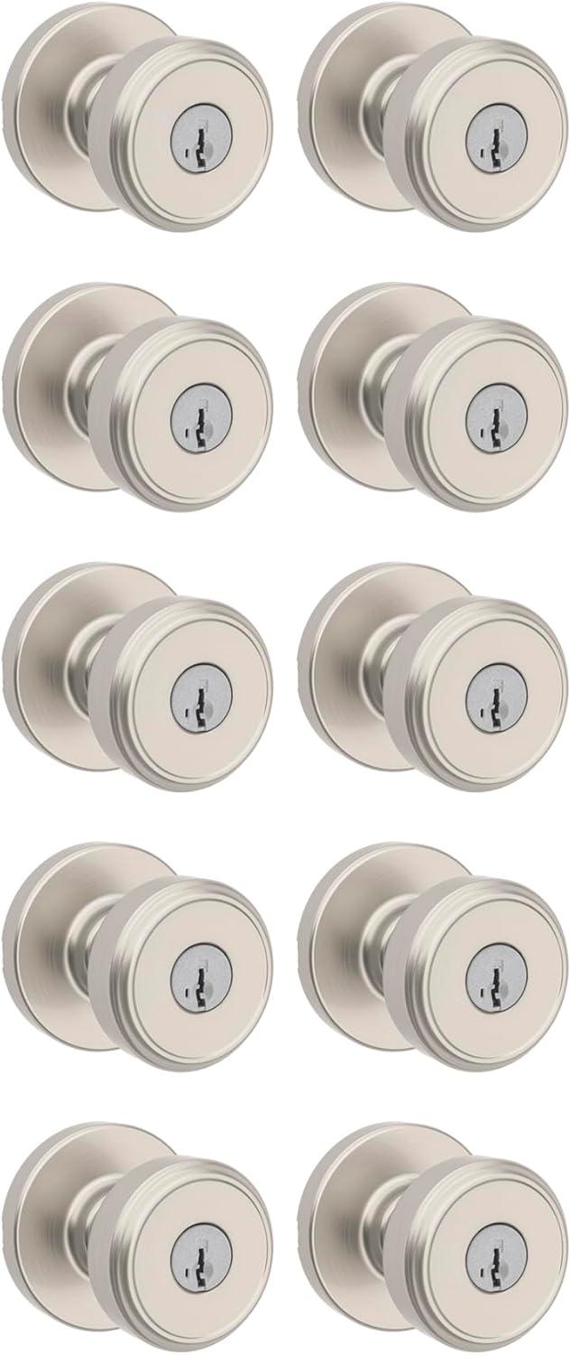 Kwikset Maven Entry Door Knob with Lock and Key, Secure Keyed Handle Exterior, Front Entrance and Bedroom, Satin Nickel, 10 Pack, Pick Resistant SmartKey Rekey Security and Microban(Satin Nickel)