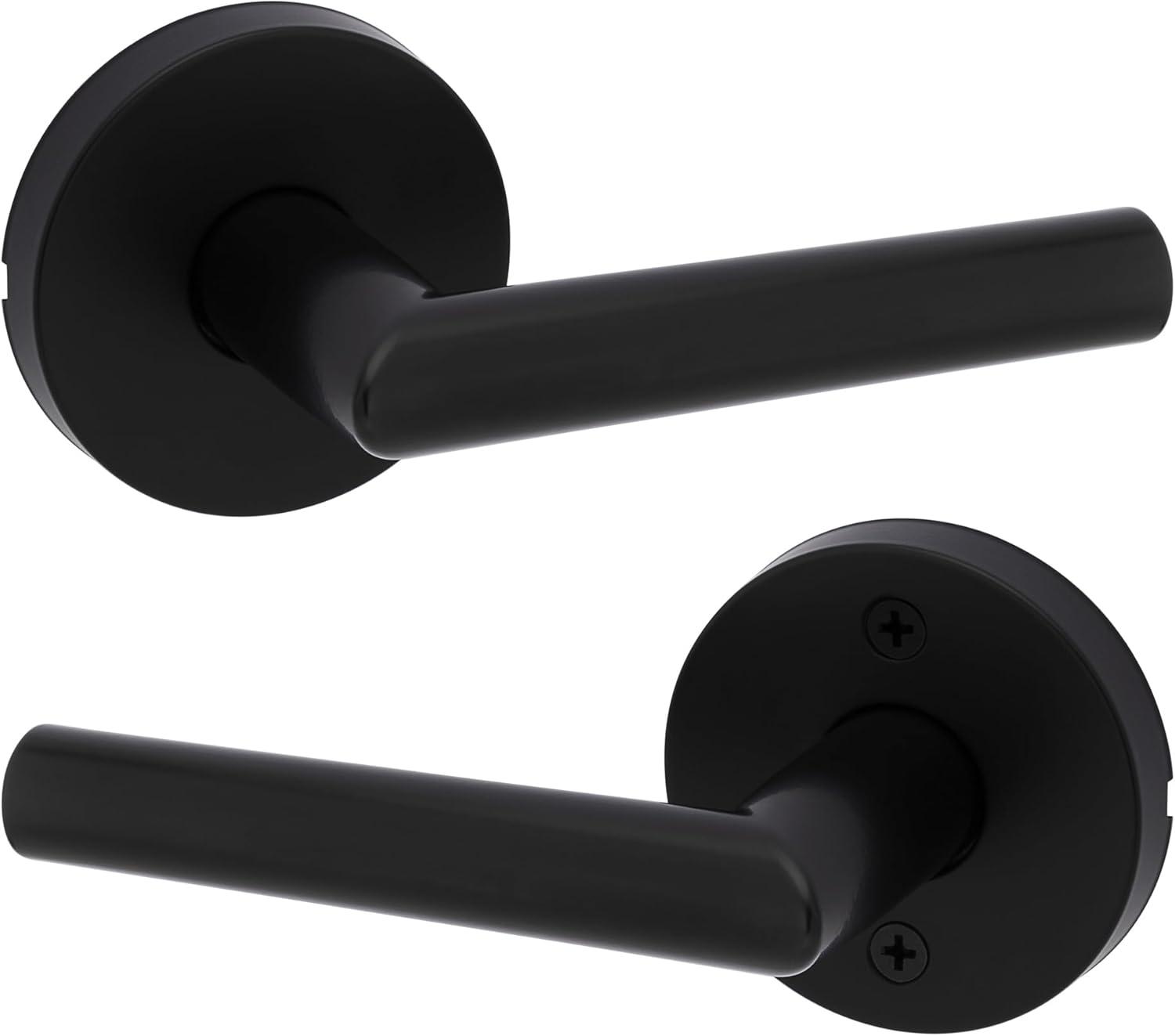 Kwikset Milan Interior Passage Door Handle, Lever For Closet and Hallway Doors, Reversible Non-Locking Handle Lever, Matte Black(Matte Black)