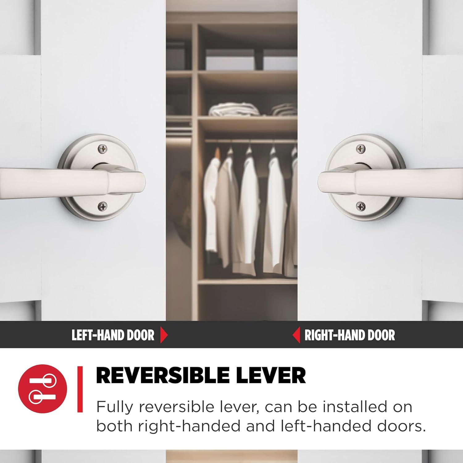 Kwikset Perth Interior Passage Door Handle, Lever for Closet and Hallway Doors, Reversible Non-Locking Handle Lever, Satin Nickel, with Microban Protection(Satin Nickel)