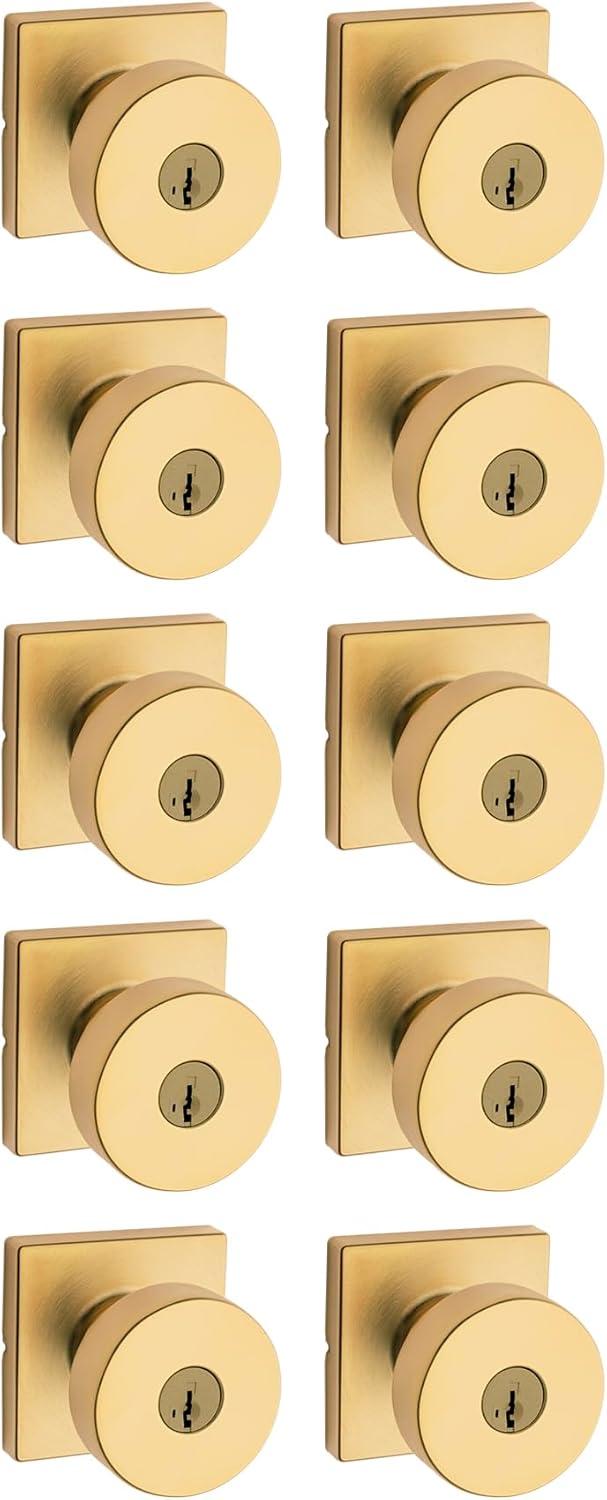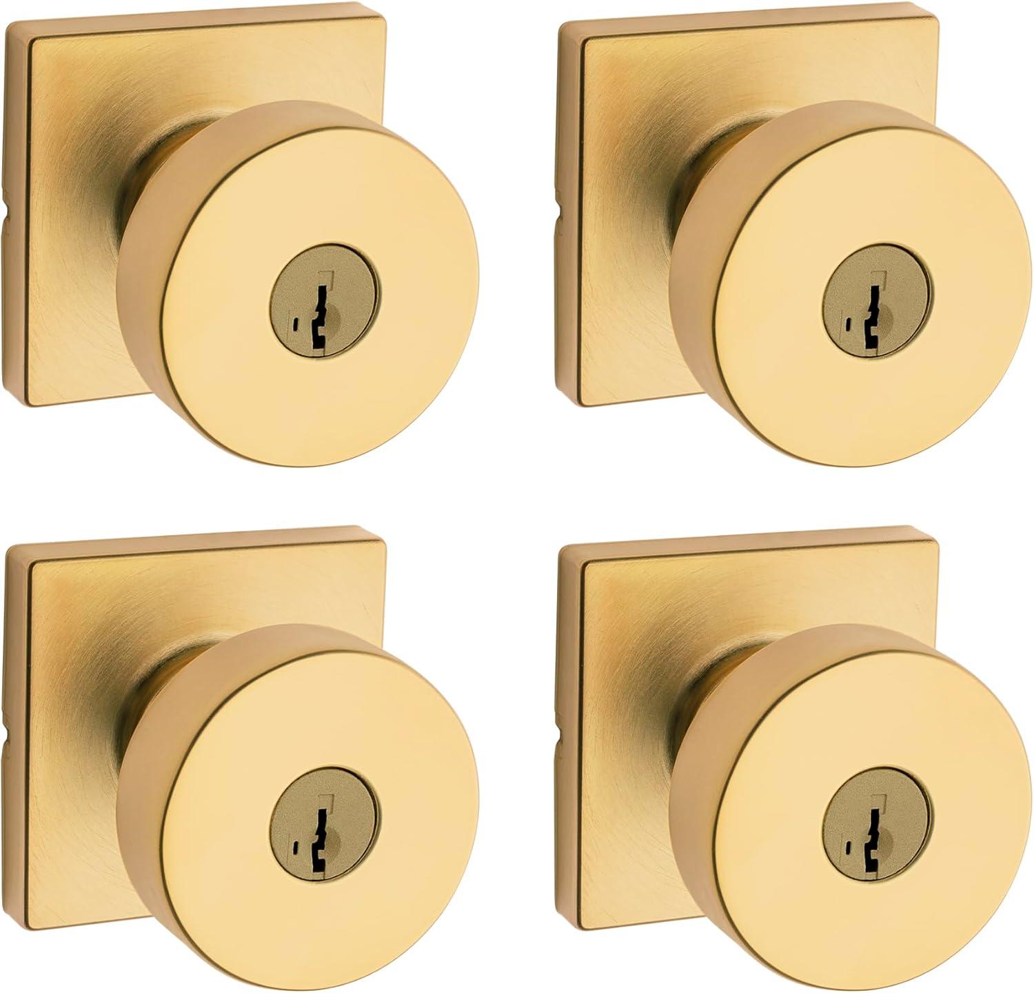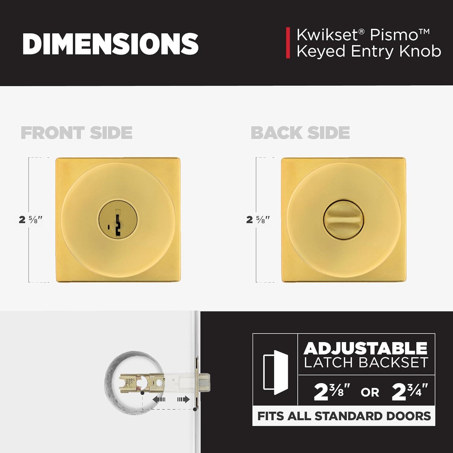 Kwikset Pismo Entry Door Knob with Lock and Key, Secure Keyed Handle Exterior, Front Entrance and Bedroom, Matte Black, Pick Resistant SmartKey Rekey Security and Microban(Satin Brass)