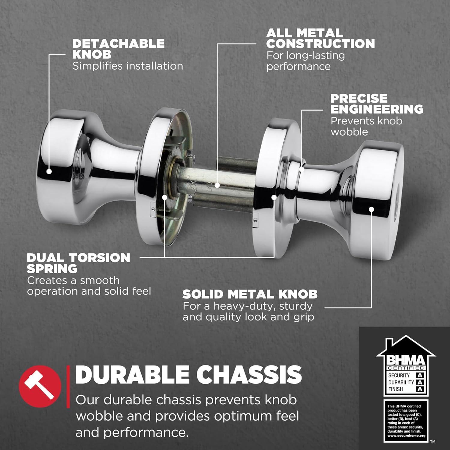 Kwikset Pismo Interior Passage Door Knob, Handle For Closet and Hallway Doors, Non-Locking Doorknob in Matte Black, with Microban Protection(Polished Chrome)