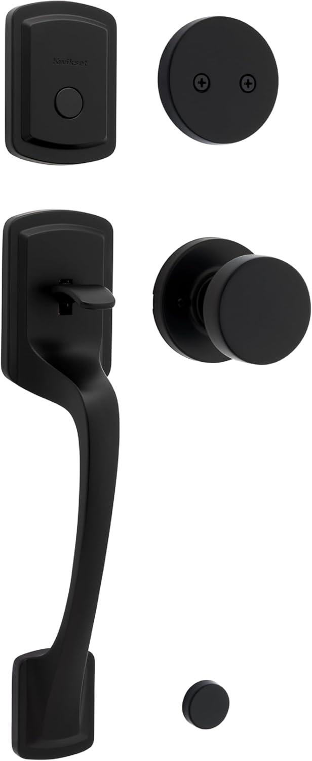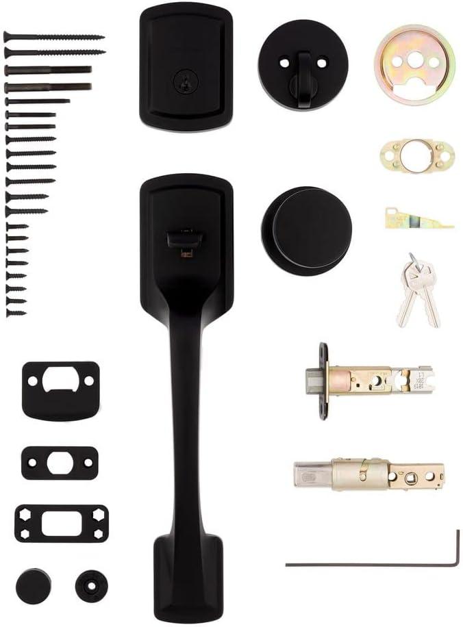 Kwikset Prague Front Door Lock Handle and Deadbolt Set, Entry Handleset Exterior with Interior Door Knob, Matte Black, Pick Resistant SmartKey Rekey Deadbolt Security, 98180-026(Matte Black)